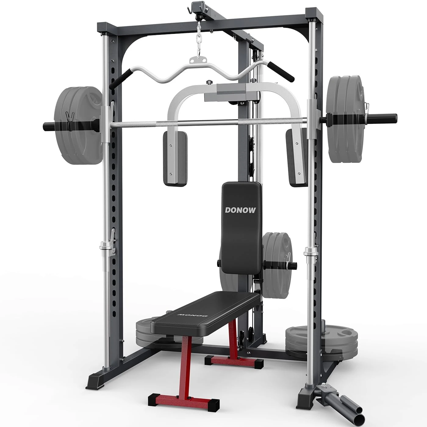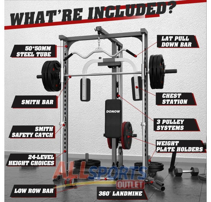 The OPPSDECOR Smith Machine Power Rack is a versatile multi-functional home gym system. Features an integrated LAT pull-down system, squat rack, and cable machine for complete workouts. Includes additional attachments for varied training options. Sturdy, durable design supports heavy lifting and intense routines. Perfect for building strength and muscle in your home gym setup.