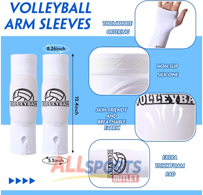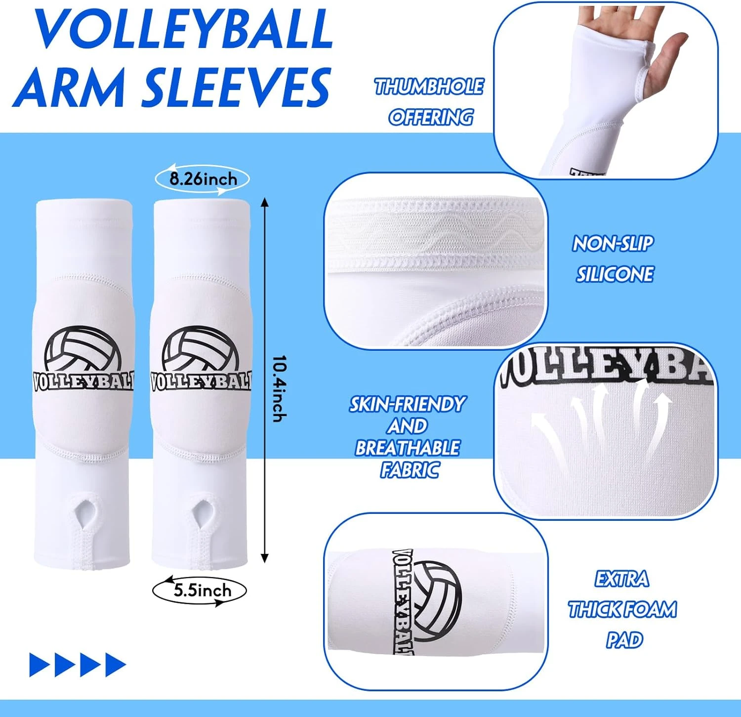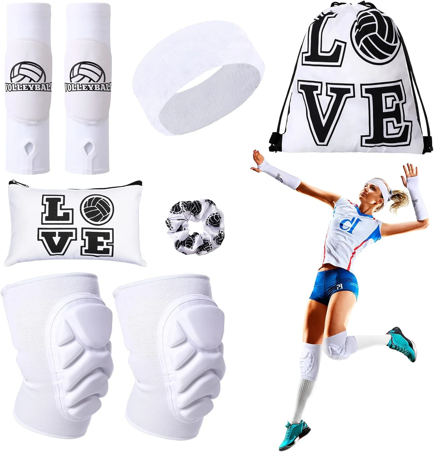 The Vabean 8 Pcs Volleyball Accessories Set includes arm sleeves, knee pads, wrist guards, hair scrunchies, sweatbands, and more. Ideal for volleyball players looking for comprehensive gear to enhance comfort and performance on the court. Perfect for both practice and game days.