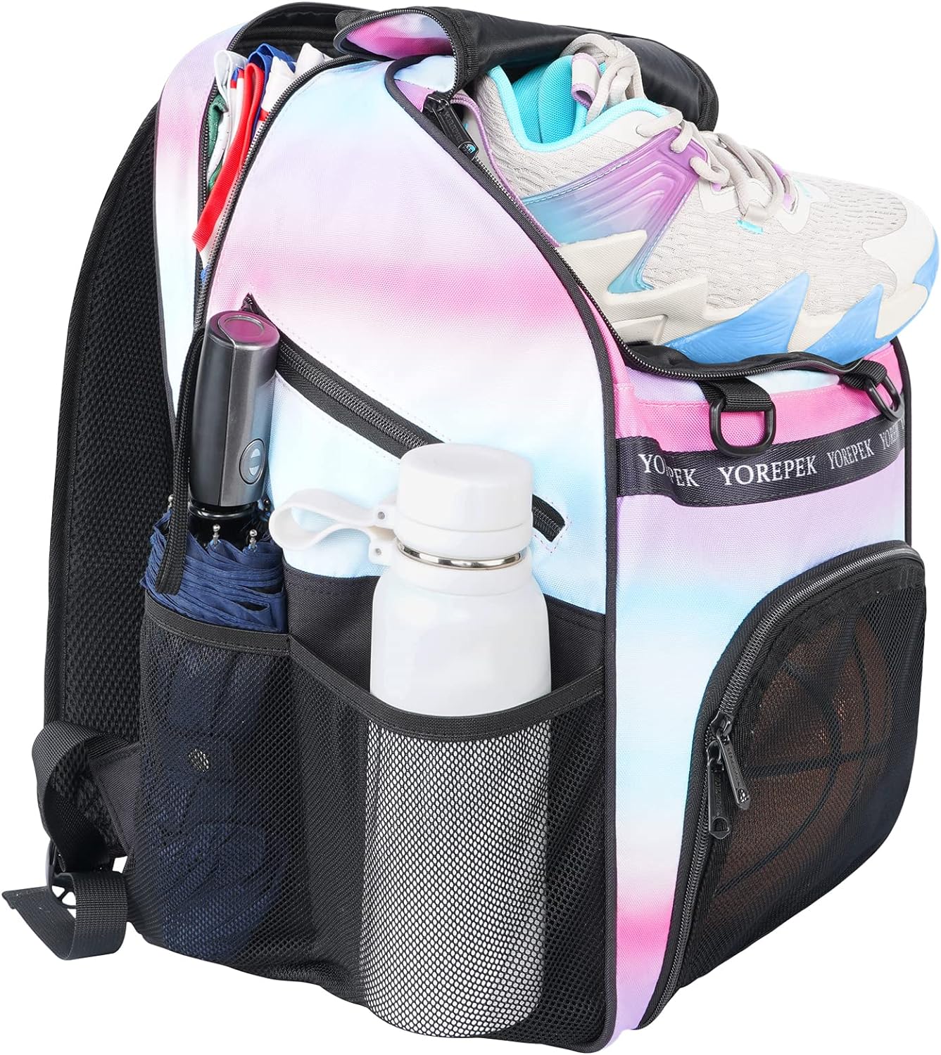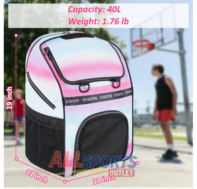 The YOREPEK Large Basketball Bag offers a spacious design with a dedicated ball holder and shoe compartment, making it ideal for basketball, volleyball, and gym training. Water-resistant and durable, it keeps your gear safe and organized while on the go. Perfect for young athletes, this bag combines style and functionality.