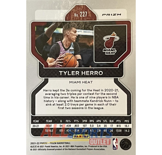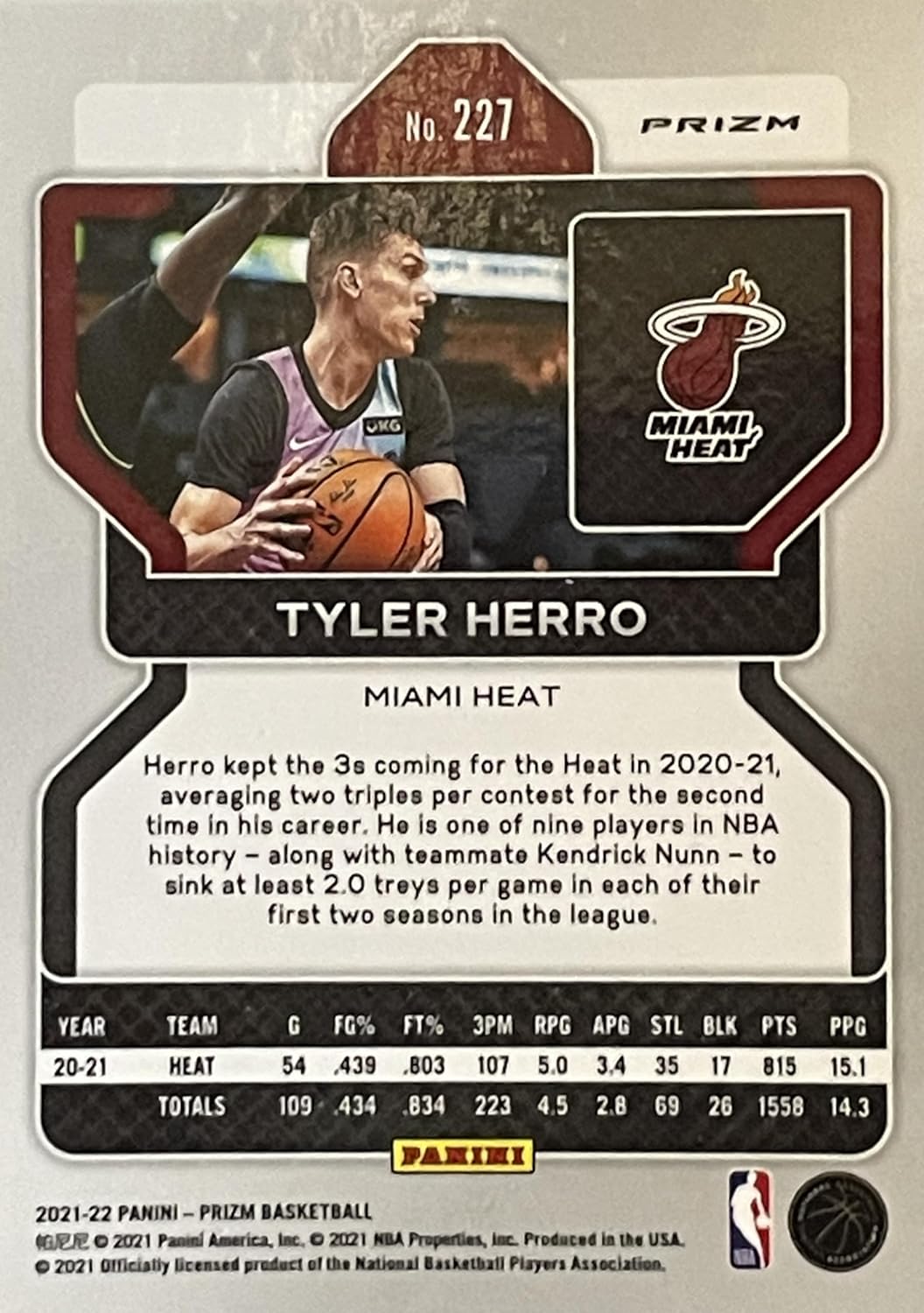 2021-22 Panini Prizm Tyler Herro Basketball Card in Silver Prizm.