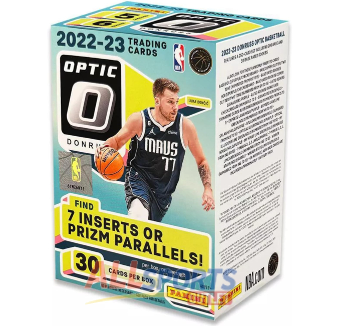 The 2022-2023 Panini Donruss Optic Basketball Blaster Box contains 6 packs of premium cards.