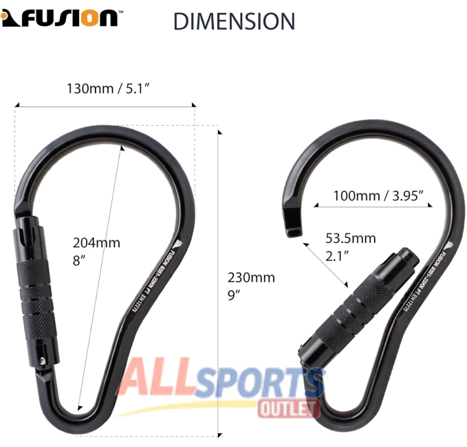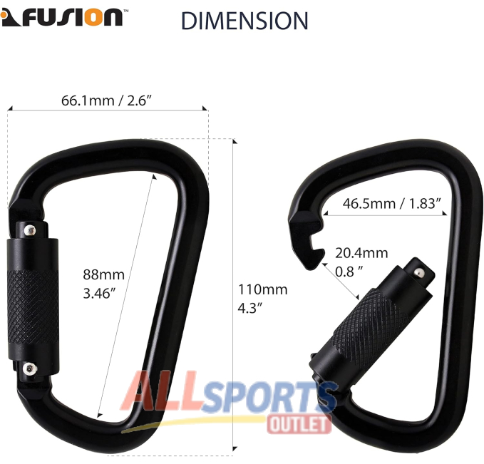 The Fusion Climb Tacoma Triple Locking Carabiner is designed for climbing and rappelling. Built with heavy-duty steel and an auto-locking mechanism for safety. The D-shaped design with captive pin ensures durability and reliability. Ideal for all outdoor adventures, it meets UIAA and ANSI standards.
