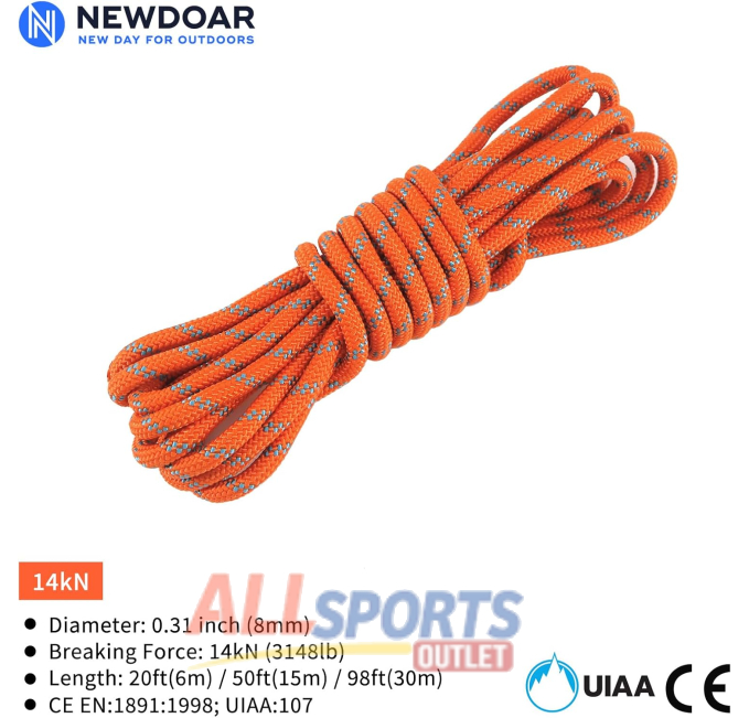 NewDoar 10.5mm Dynamic Climbing Rope is designed for durability and versatility.