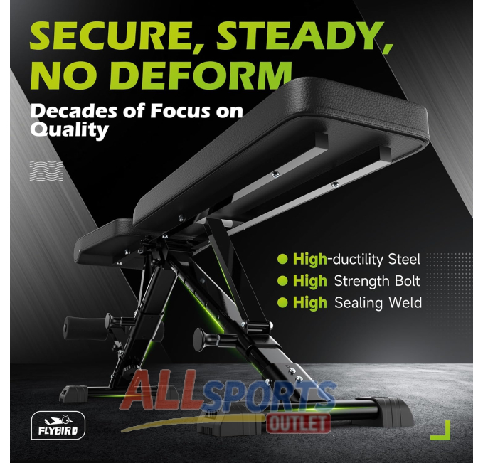 The FLYBIRD Adjustable Weight Bench offers a foldable design perfect for home gyms. With a 750LBS weight capacity and adjustable headrest, it’s ideal for users up to 6’5″. Compact and durable, this bench ensures comfort and stability for all types of workouts.