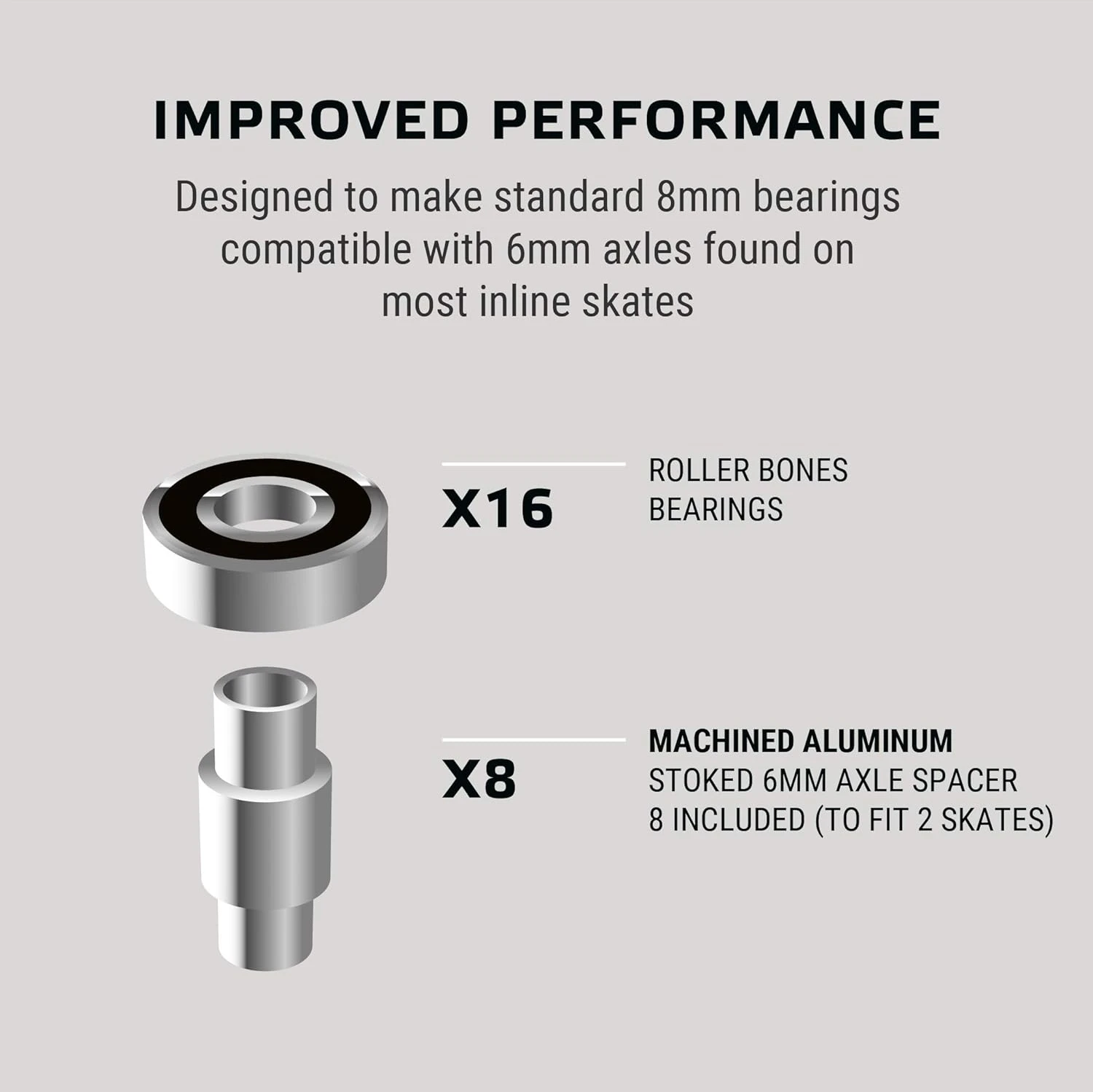Rollerbones Bearings 8mm are designed for smooth, high-performance rides. This 16-pack set includes Dragon Spacers, ensuring precise alignment and minimal friction for optimal speed. Perfect for roller derby and inline skates. Durable and reliable for long-lasting use.