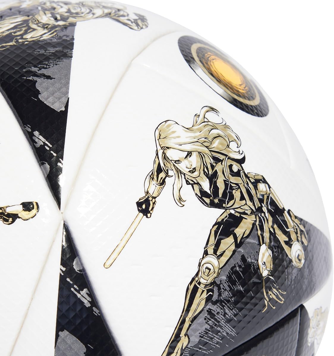The adidas MLS Pro Soccer Ball features a sleek black, white, and metallic gold design. Ideal for competitive play with a durable construction and precise flight for professional-level performance. Perfect for league matches and training sessions.