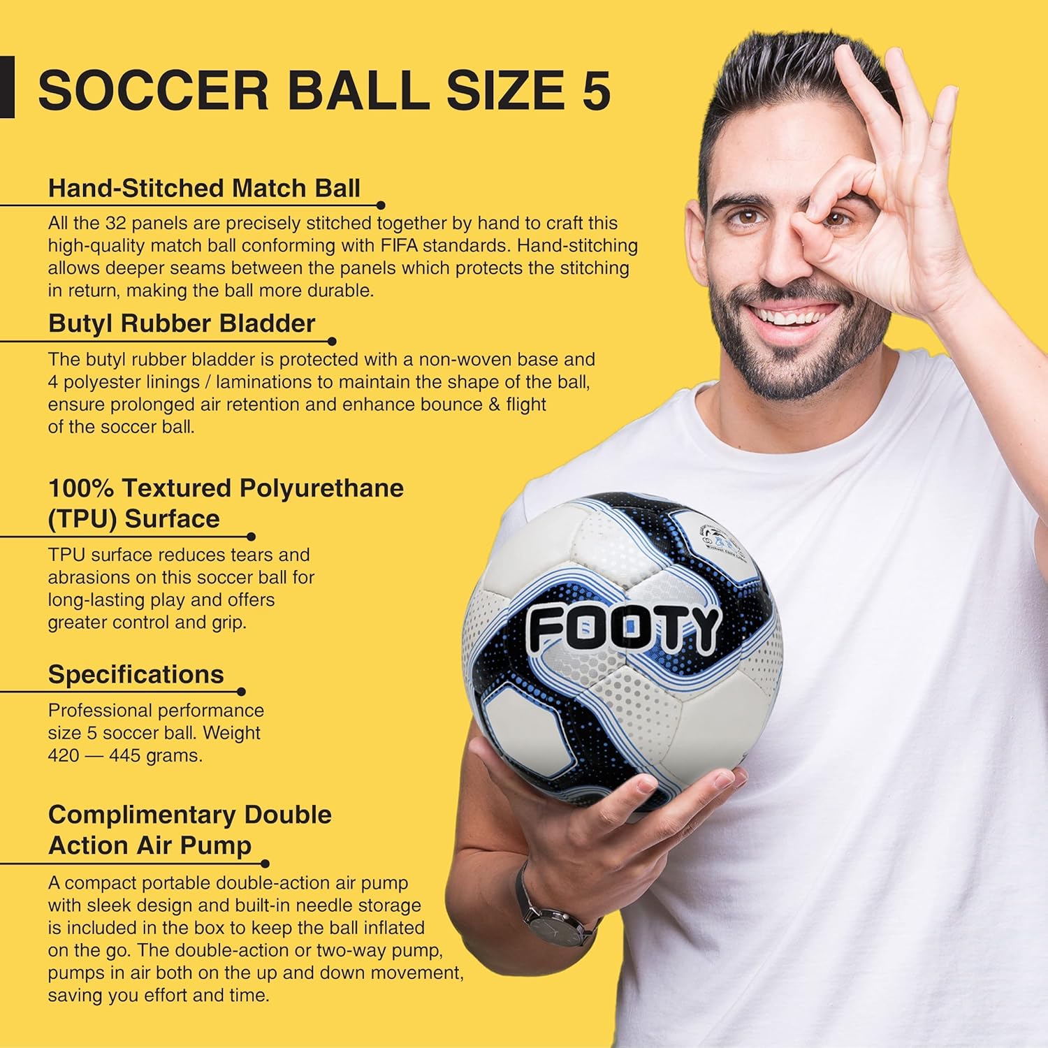 The Brisko USA Footy Soccer Ball Size 5 is a durable, hand-stitched leather ball designed for professional training. Ideal for youth players, it includes a pump and offers superior control and performance on the field. Perfect for practice and skill development.