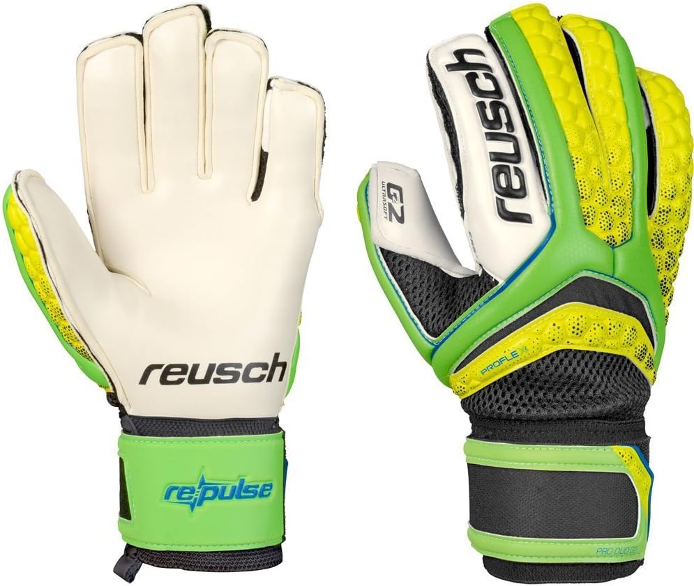 The Reusch Soccer Pulse Pro Duo G2 Goalkeeper Gloves offer superior grip and protection. Designed with G2 latex for optimal ball control, they feature a unique Pro Duo cut for a perfect fit. Ideal for competitive goalkeepers, these gloves combine durability and comfort with enhanced support for finger protection. The green and yellow color combination ensures you stand out on the field. Perfect for all-weather play and high-performance matches.