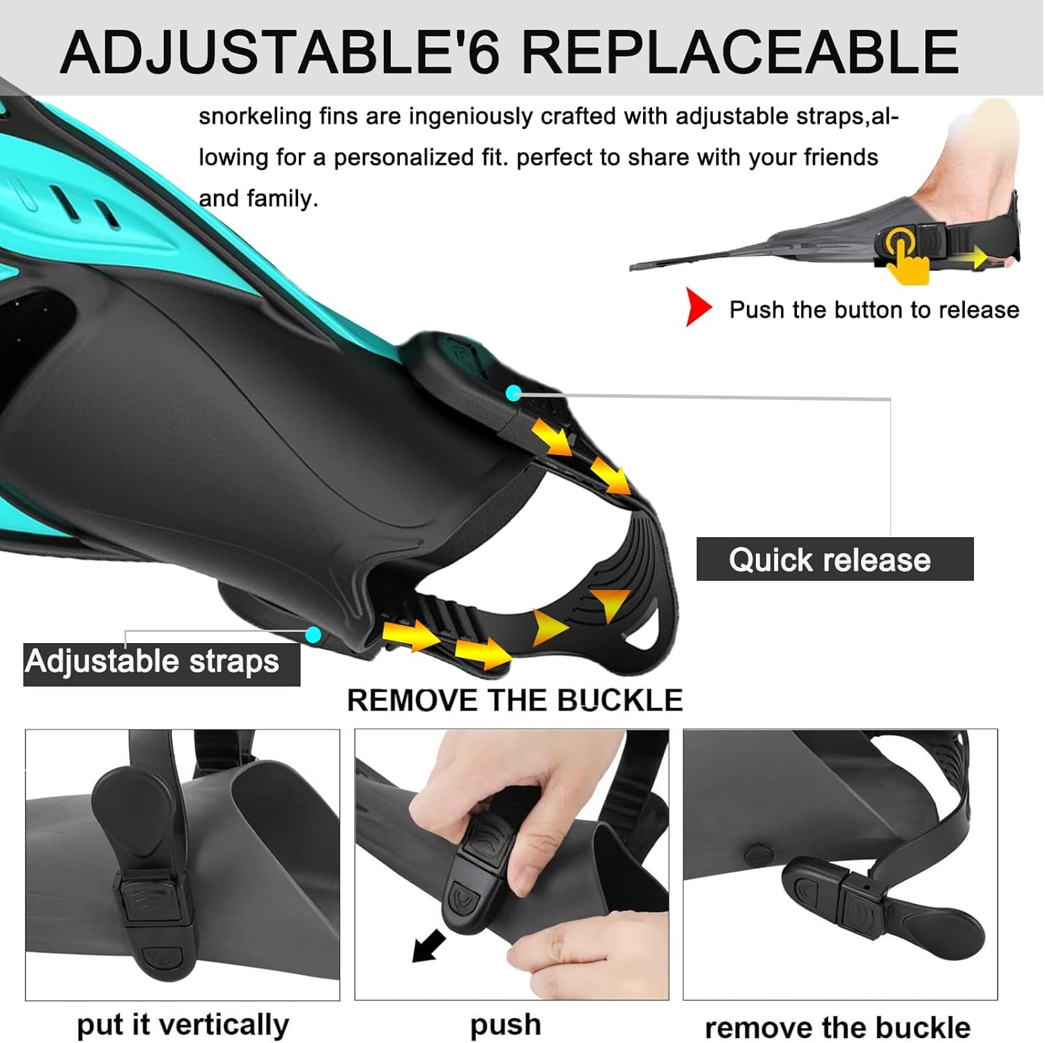 Perfect for snorkeling and diving, these adjustable buckle fins provide a secure fit for both men and women. Designed for comfort and performance, they are ideal for travelers seeking compact, lightweight fins. Durable and high-quality material ensures long-lasting use.
