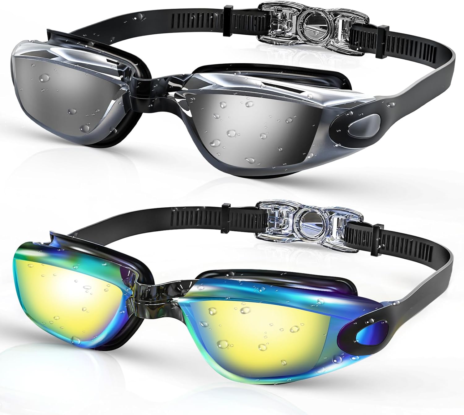 JugWoy 2 pack swim goggles designed for adults and youth. Comfortable fit with adjustable straps for men and women. Anti-fog lenses ensure clear vision in pools or open water. Durable and lightweight, perfect for recreational and competitive swimming.