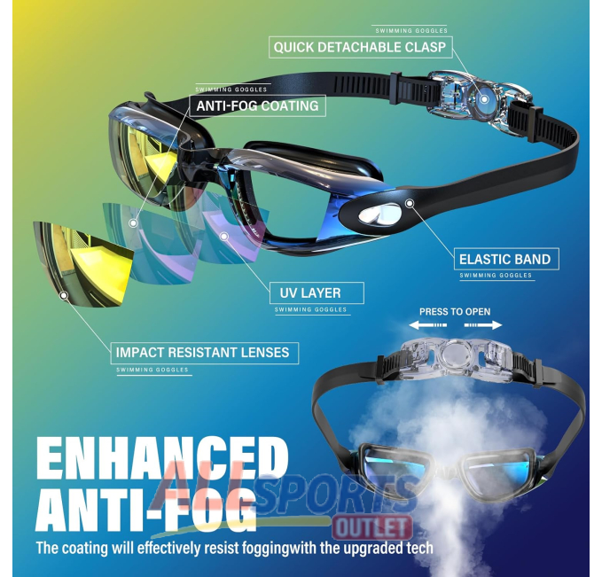 Seago Swim Goggles offer anti-fog lenses and UV protection for clear, comfortable swimming. Designed to prevent leaking, these goggles provide a secure fit with a soft silicone gasket. Ideal for adults and youth, they are perfect for triathlons and pool swims. Enjoy 180° clear vision with these high-performance swim glasses, available at All Sports Outlet.