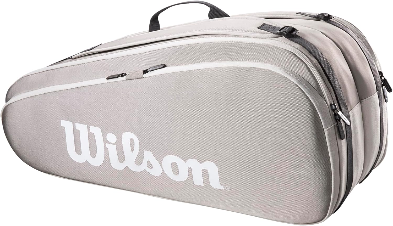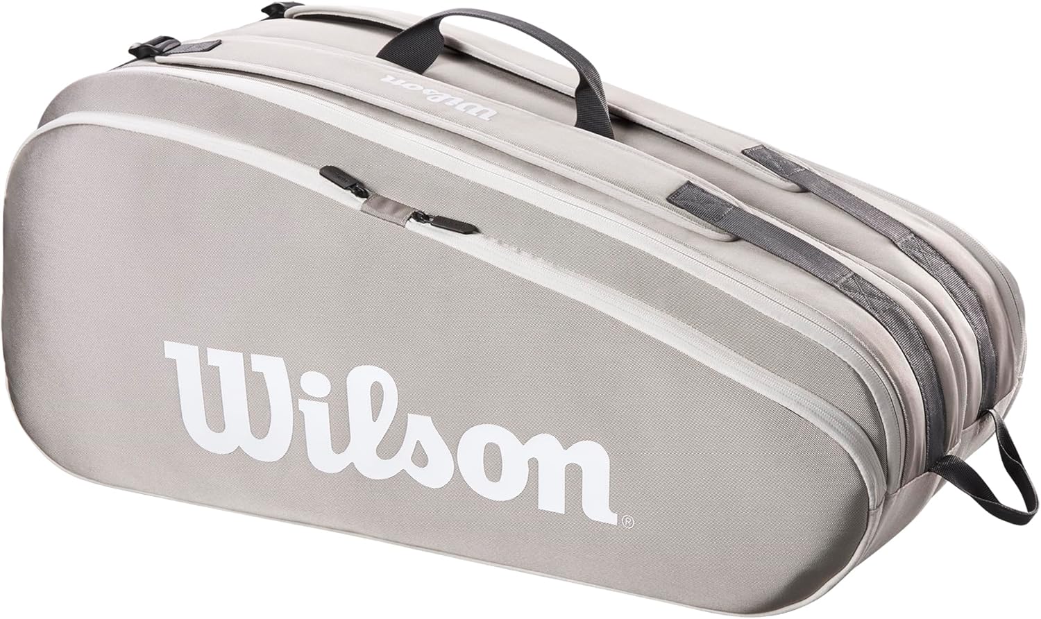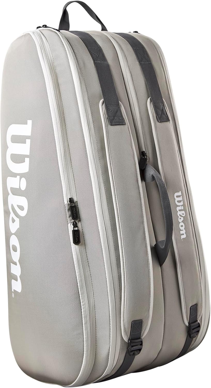 Sport: TennisThe Wilson Tennis Racket Bag in Stone Grey is designed for serious tennis players who need ample storage for their gear. This spacious bag holds up to 12 rackets and features multiple compartments for accessories, clothing, and personal items. Made from durable materials, it provides excellent protection and organization for your equipment. With comfortable straps and a sleek design, this bag is ideal for players looking for a high-performance, reliable tennis bag. Available now at All Sports Outlet.