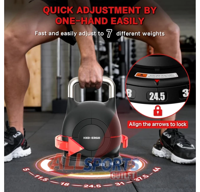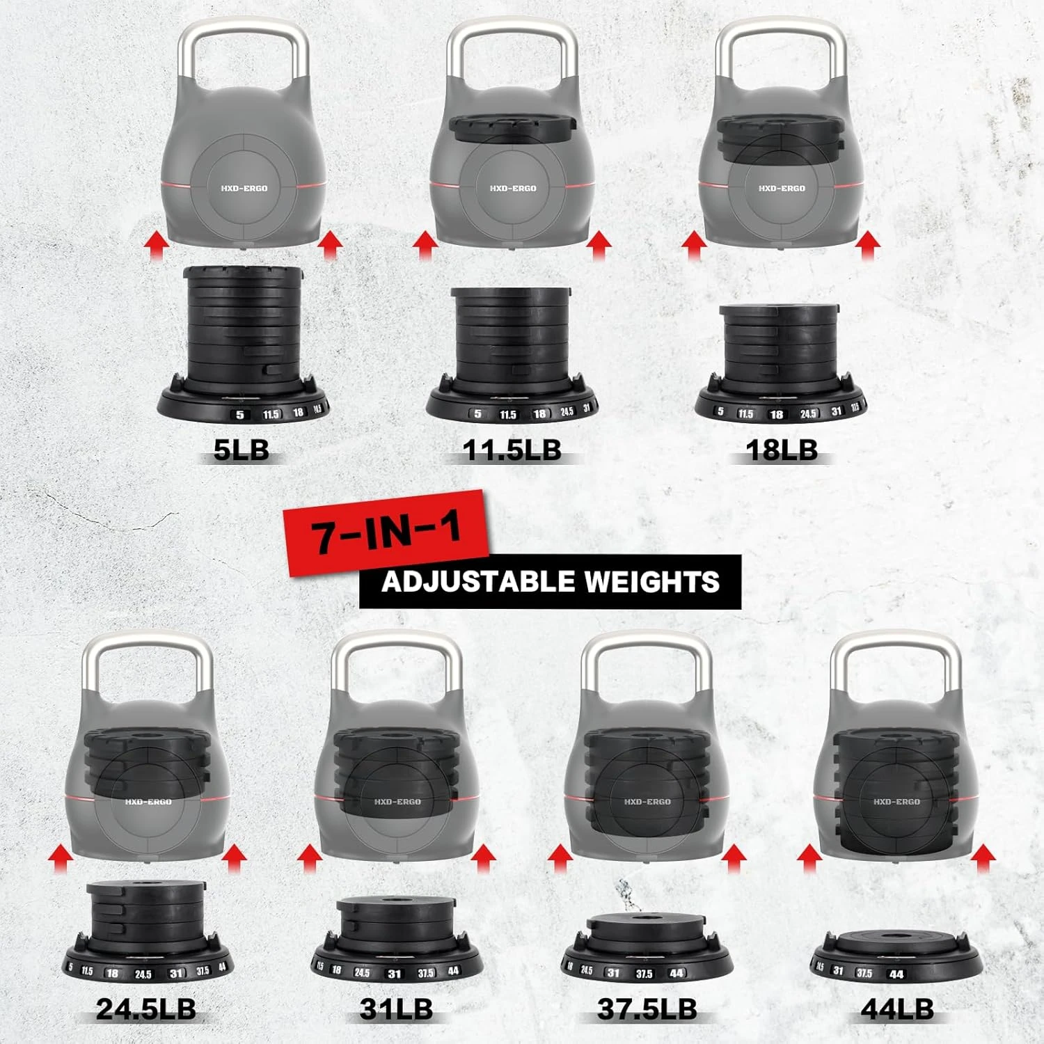 Quickly adjusts from 5 lb to 44 lb for various fitness levels.