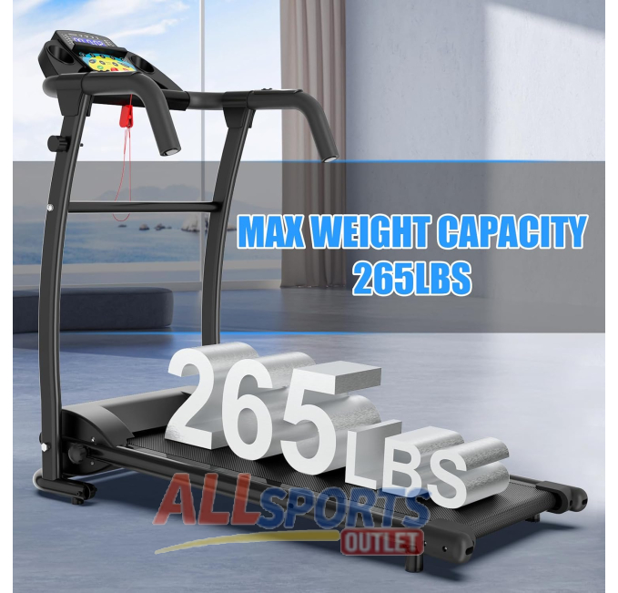 The HomeFit 2.5HP Folding Treadmill offers a space-saving design ideal for home or office use. Features 12 preset programs, an LED display, and a compact frame. Supports up to 265 lbs, perfect for walking, jogging, or light running.