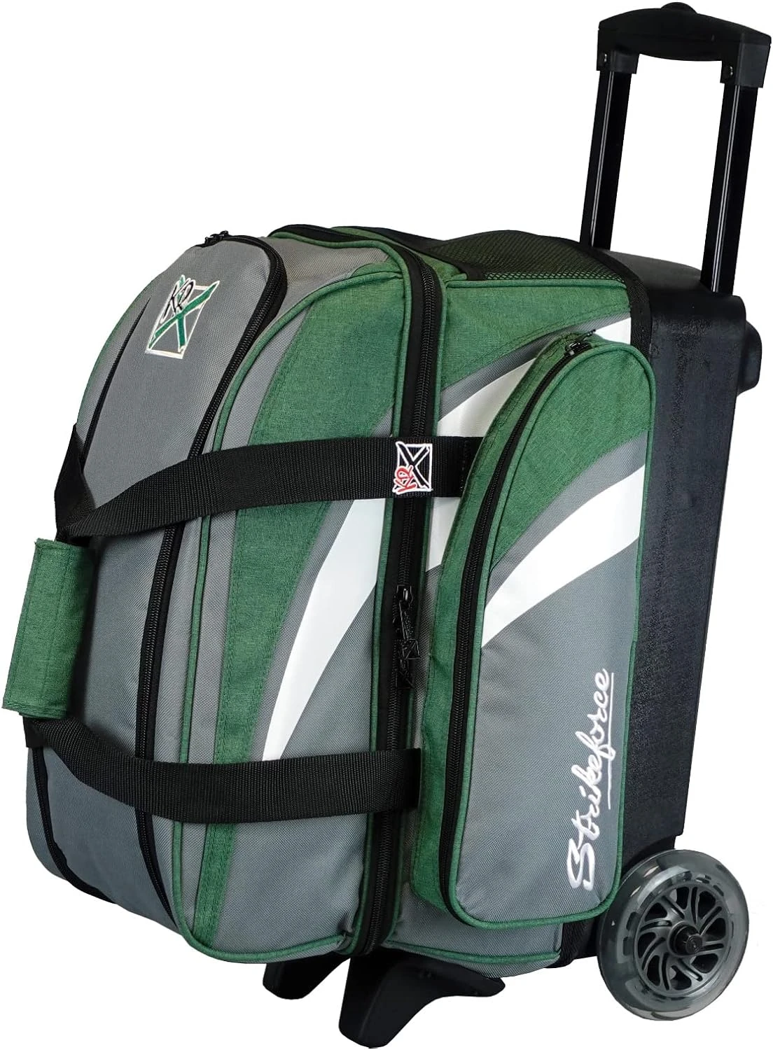 Features spacious compartments for two bowling balls and extra storage for accessories.