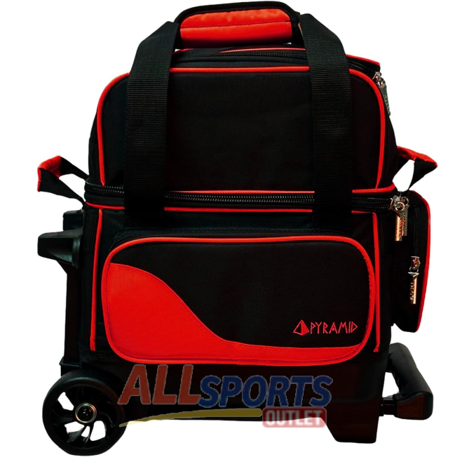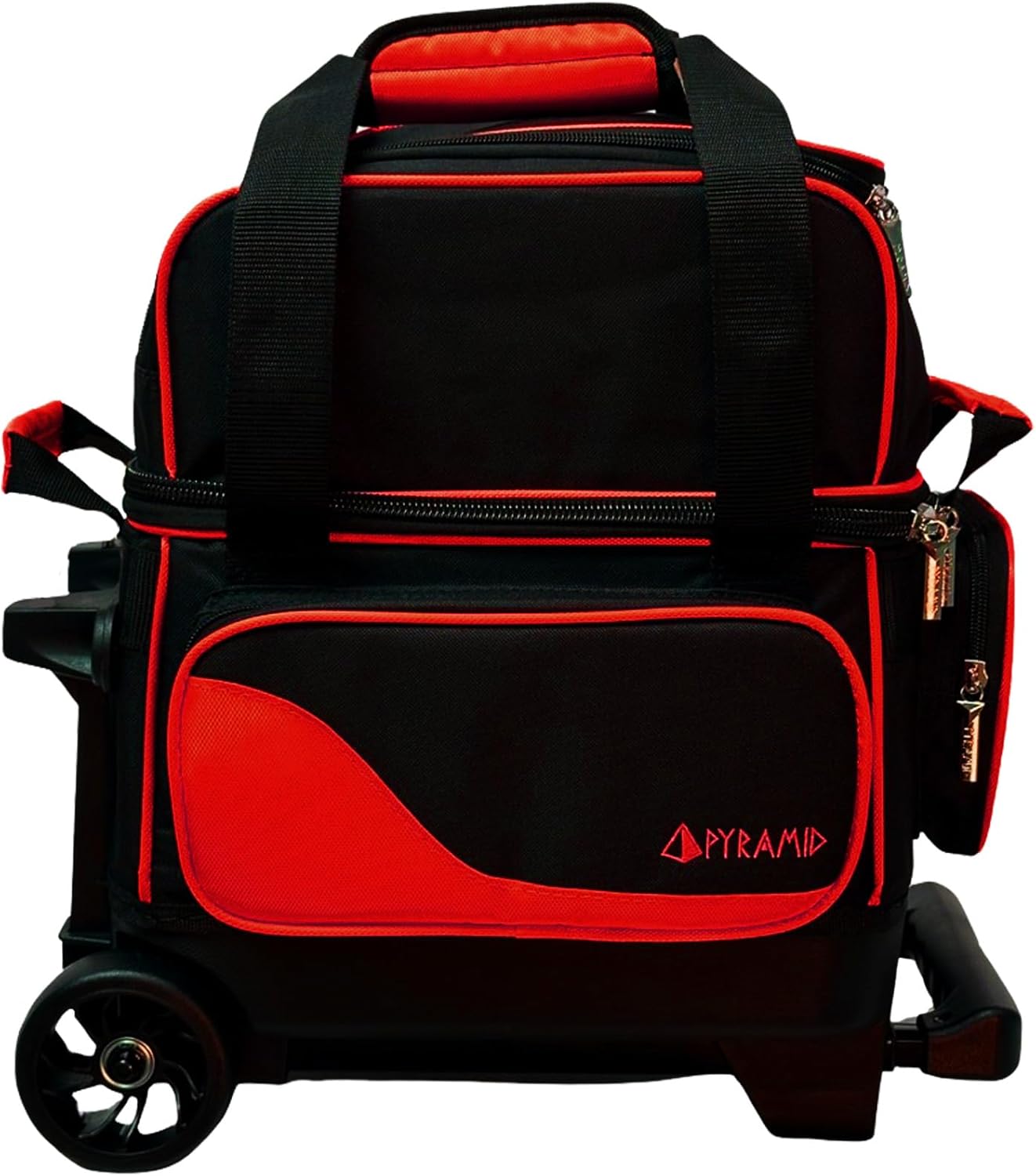 The Pyramid Path Pro Deluxe Single Roller Bowling Bag is designed for bowlers seeking portability and style. Holds one ball, shoes, and accessories with ease. Features durable materials and smooth-rolling wheels for effortless transport. The sleek black and red color scheme makes it both functional and fashionable.