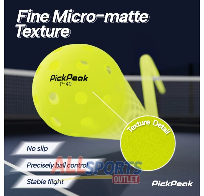 The PickPeak Pickleball Balls feature 40 holes and are perfect for outdoor play. This 12-pack is USAPA approved for official tournament play and is designed for durability and high bounce. Made from high-quality materials, these balls are built to withstand intense play and provide consistent performance. Ideal for players of all skill levels, the bright yellow color ensures excellent visibility. Includes a mesh bag for easy transport and storage. Perfect for both casual games and competitive matches.