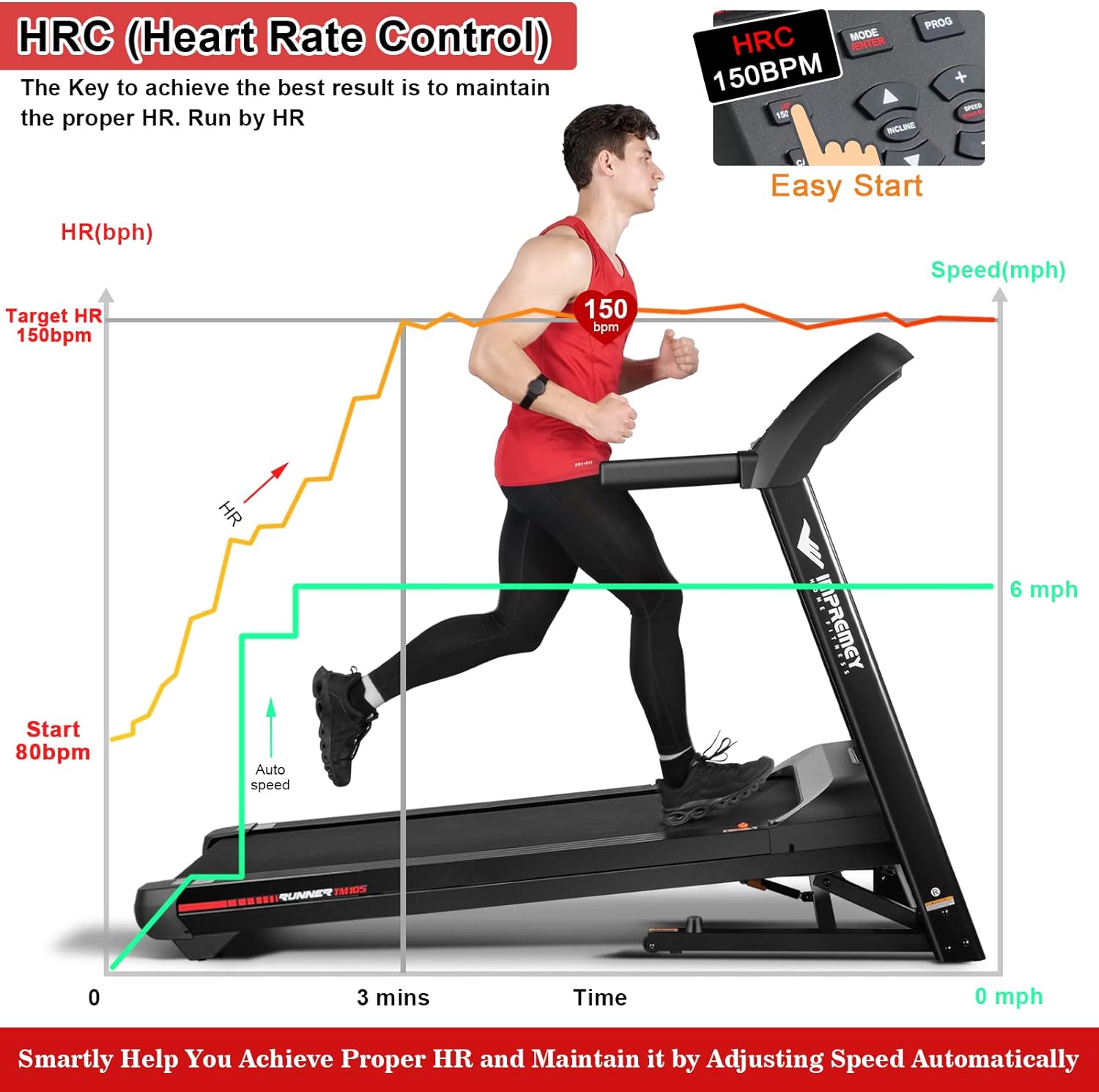 The Impremey Folding Treadmill offers 15% auto incline, 3.5HP motor, and 350 lb capacity. With speeds up to 11 MPH and a spacious 50″ x 19″ running area, it’s perfect for home workouts. Includes heart rate monitor and HRC training for enhanced fitness.