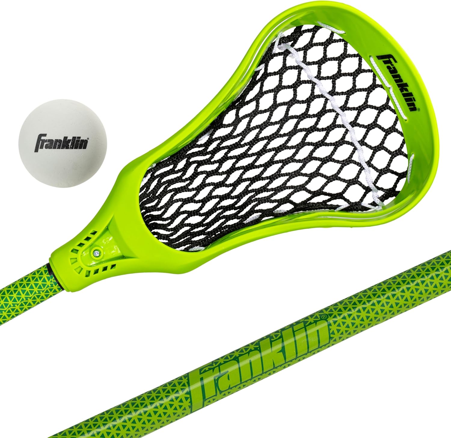 The Franklin Sports Youth Lacrosse Goal Stick Set includes everything young players need to get started. This set features a durable goal and sticks for both the goalie and player. Perfect for kids looking to practice and improve their lacrosse skills. Easy to assemble and made for outdoor play.