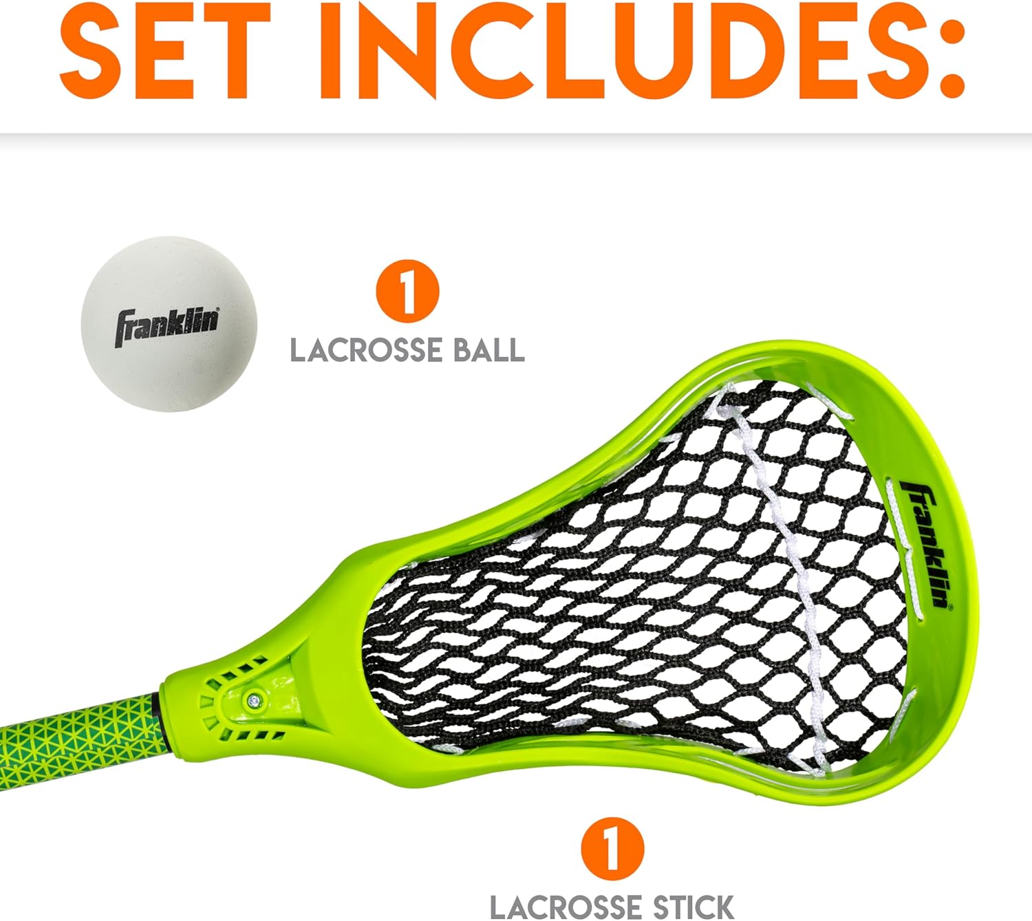 The Franklin Sports Youth Lacrosse Stick and Ball Set is designed for beginners ages 3+. This set includes two practice sticks and one ball, making it perfect for teaching the fundamentals of lacrosse. Lightweight and easy to handle, it’s great for young players learning the game.