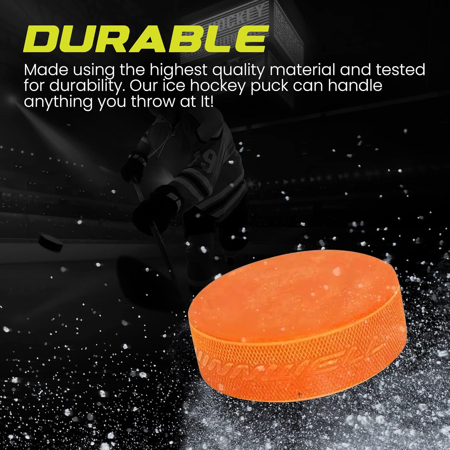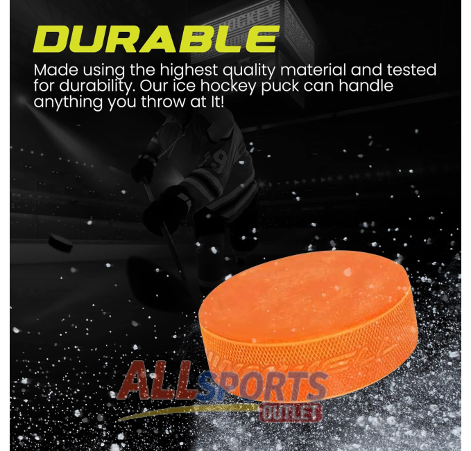 TronX weighted orange ice hockey pucks ideal for training and drills.