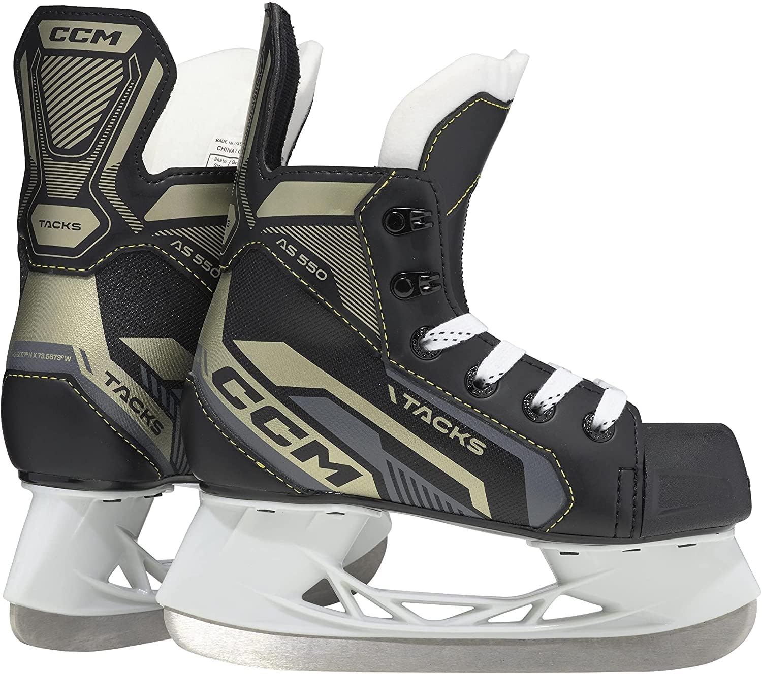 The CCM Tacks 550 Youth Hockey Skates are designed for young athletes seeking speed and comfort on the ice. Featuring a durable build and superior support, these skates provide excellent traction for quick maneuvers. Ideal for youth players, they offer a lightweight, high-performance feel to enhance skating skills and agility. Perfect for developing players who want to take their game to the next level.