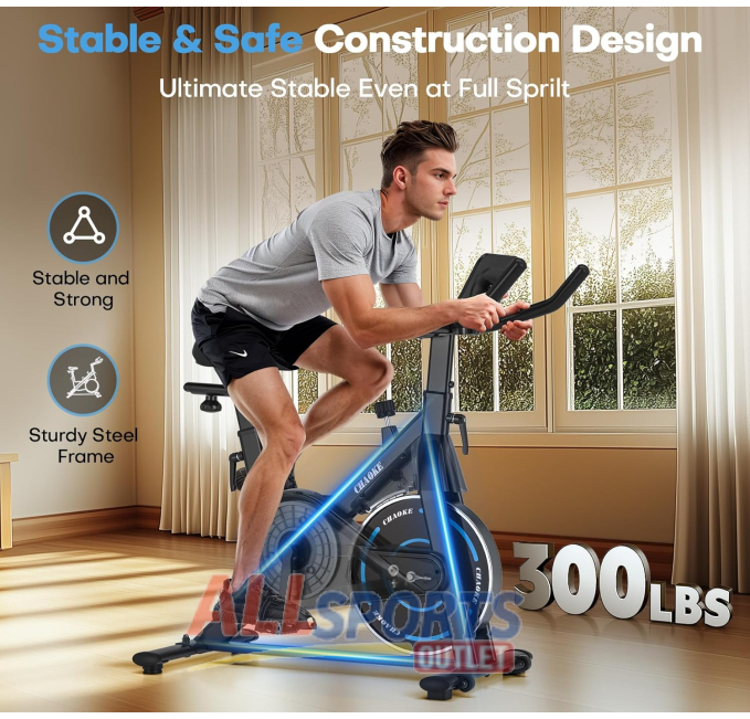 The CHAOKE Exercise Bike features quiet magnetic resistance with a 300LB capacity. Perfect for home workouts, it offers app compatibility and a comfortable seat. Enjoy smooth rides and precise performance with the digital display for easy tracking.