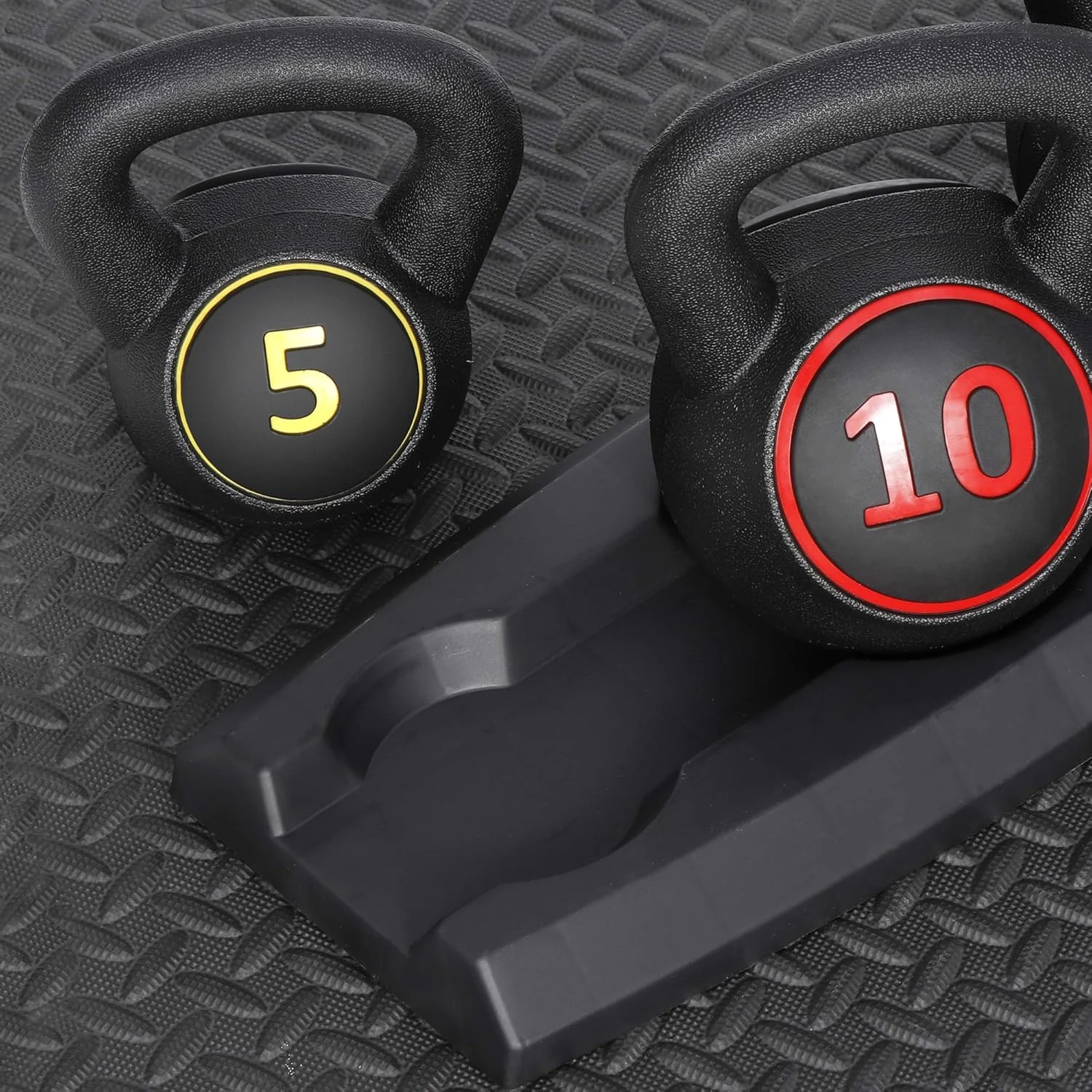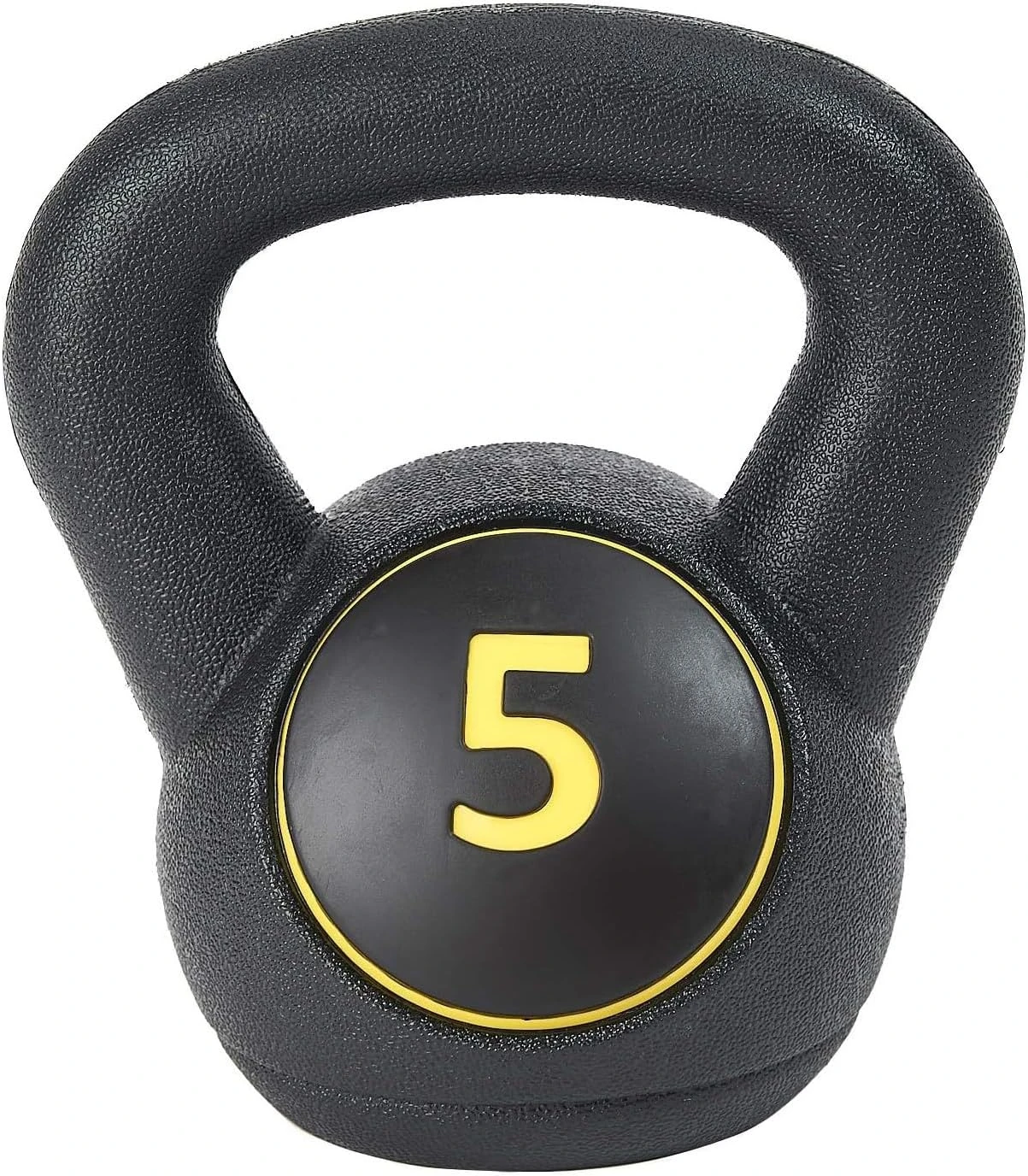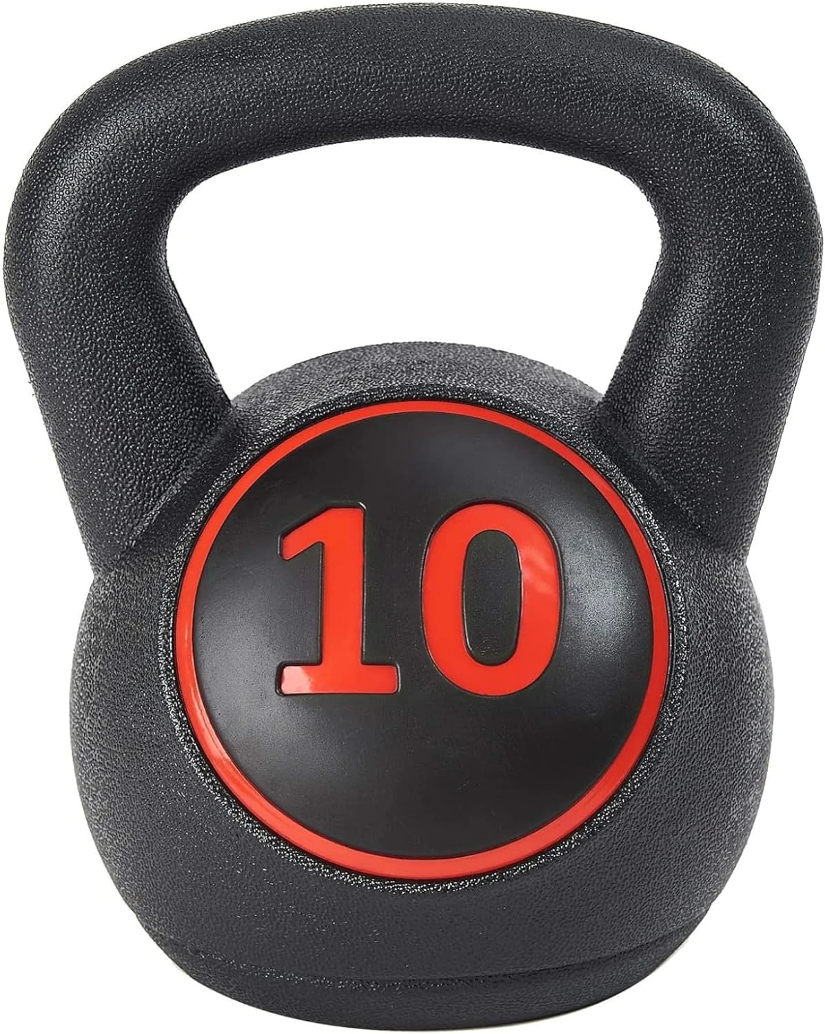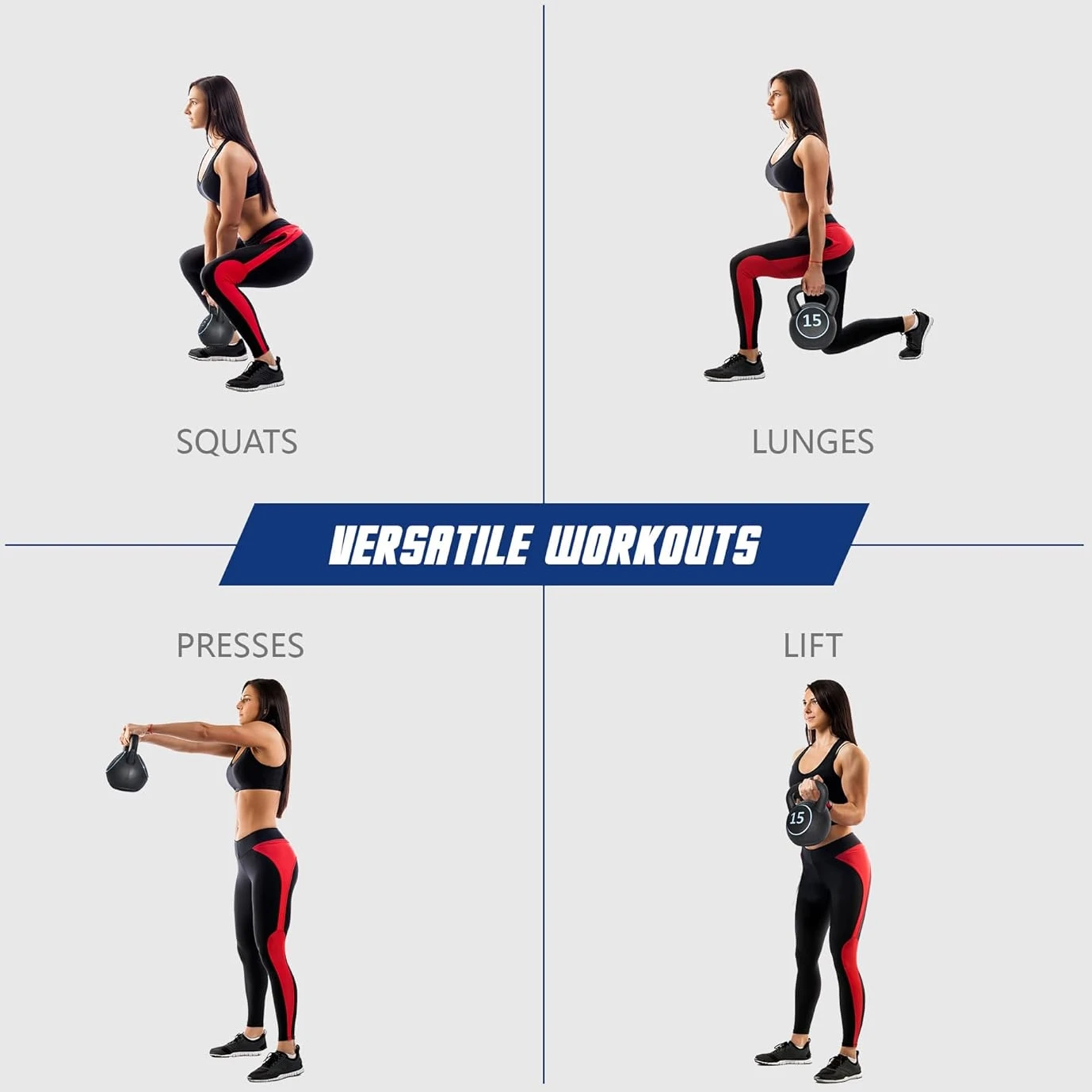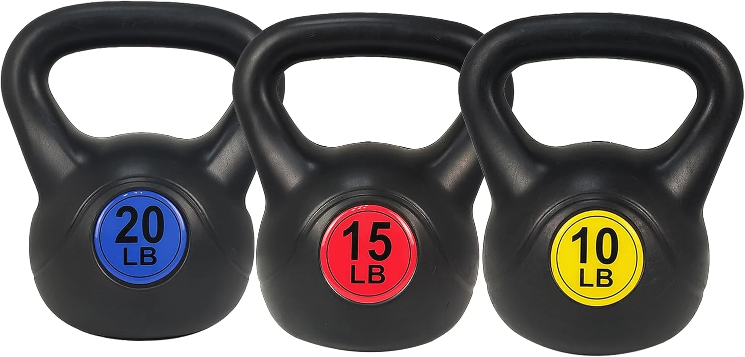 Includes 5, 10, and 15-pound kettlebells for varied workouts.