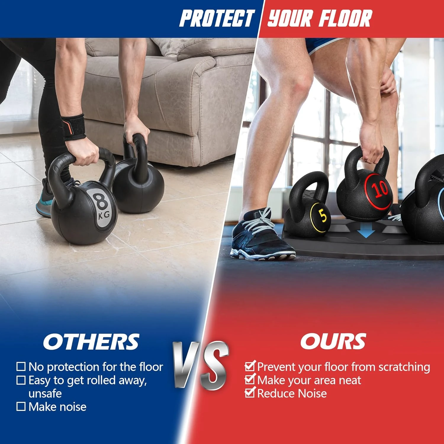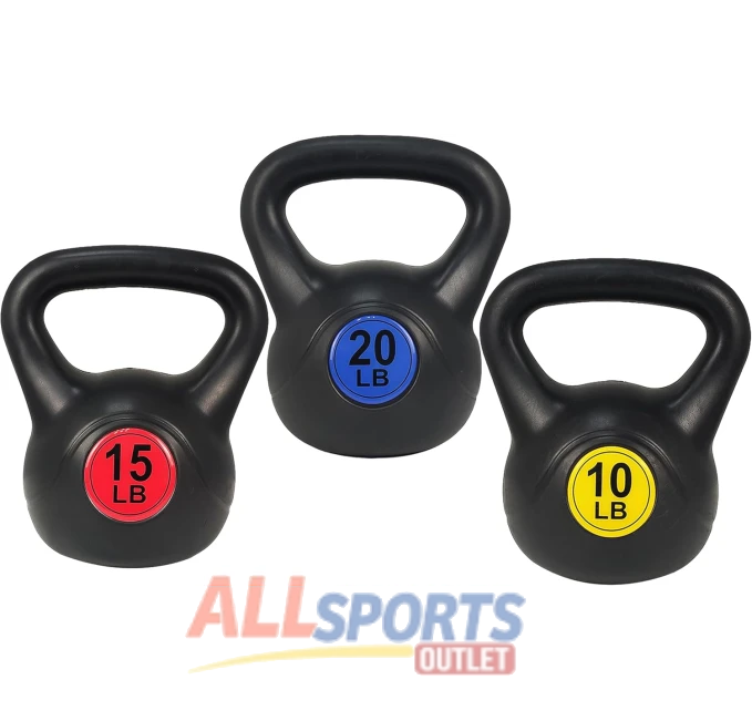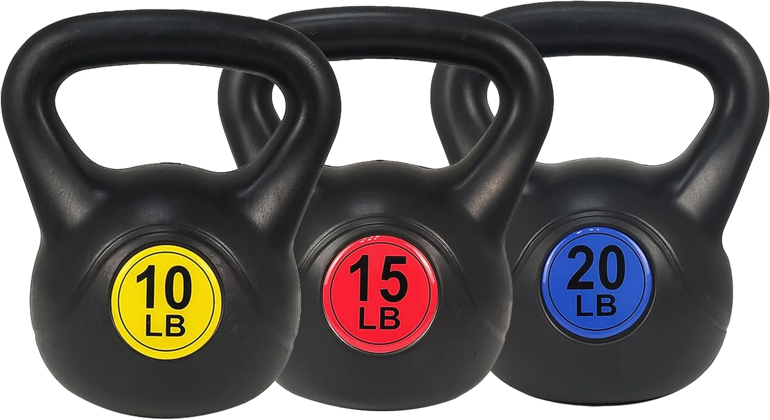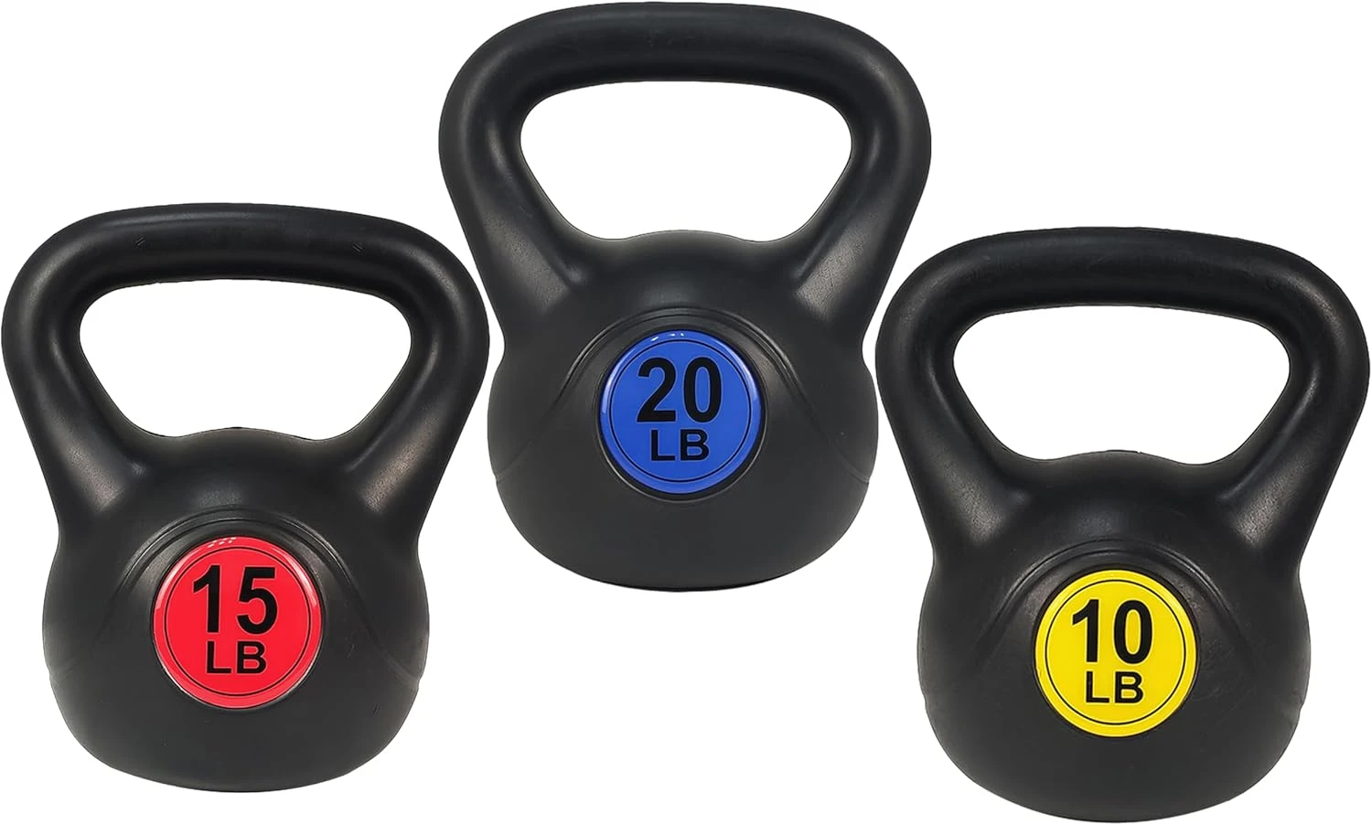 Includes 10, 15, and 20-pound kettlebells for versatile workouts.