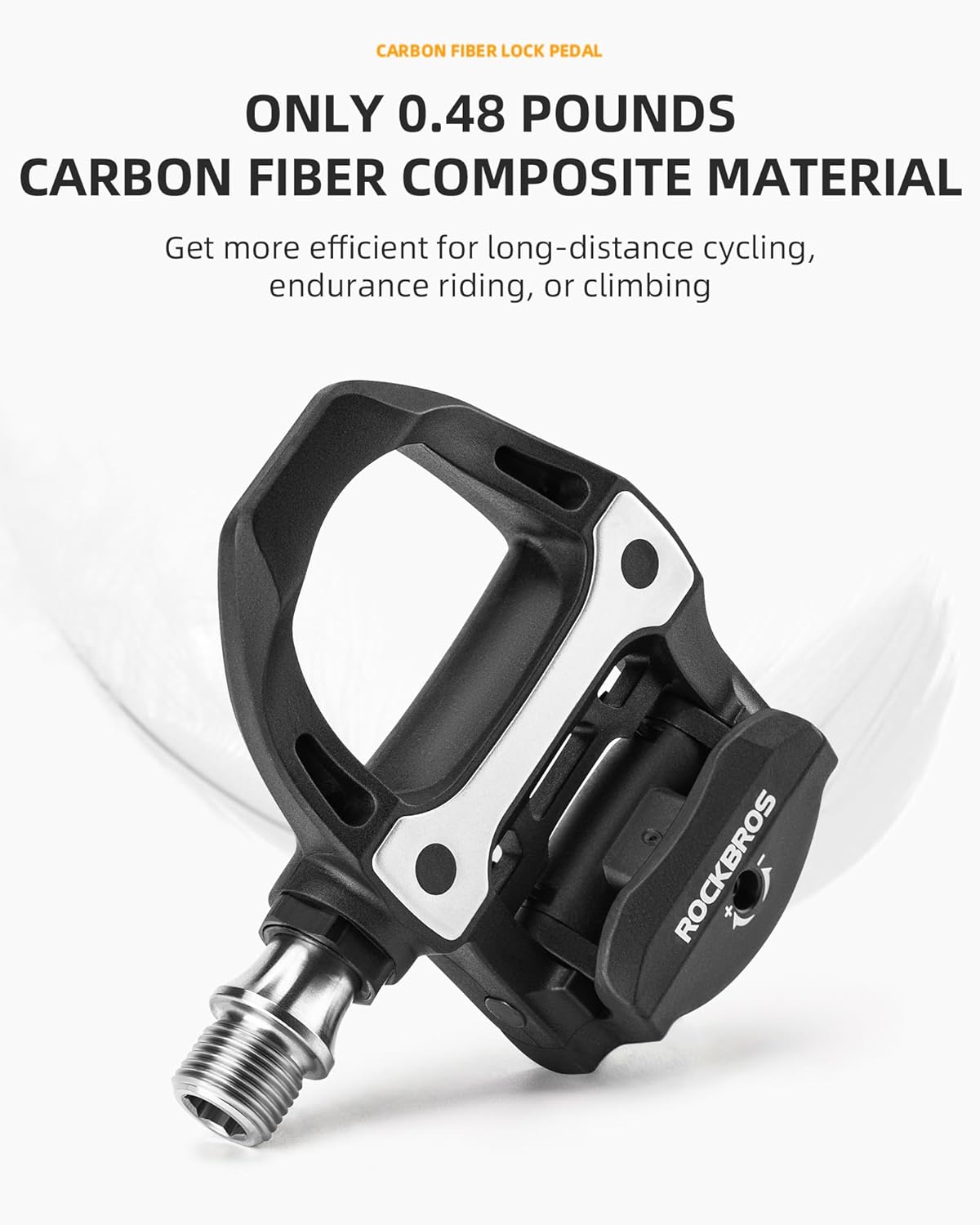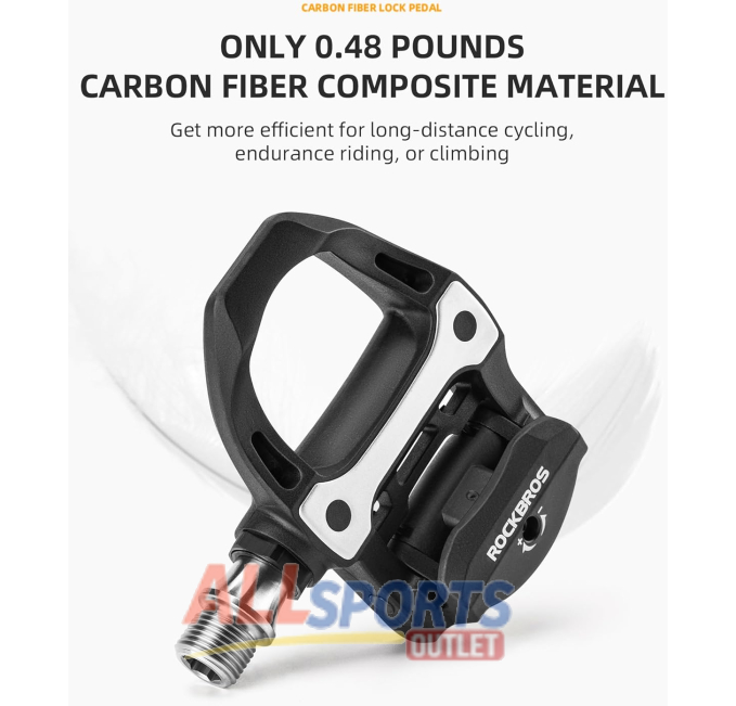 Lightweight carbon fiber SPD-SL bike pedals for road cyclists.