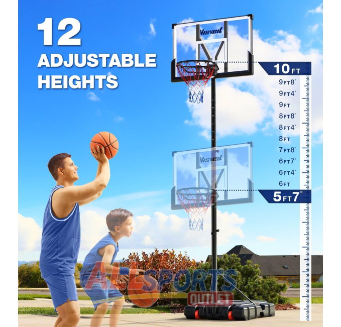 The Yohood 10ft Adjustable Basketball Hoop is designed for outdoor fun and practice. Featuring a portable base and adjustable height, it’s ideal for kids, youth, and adults. The durable, shatterproof backboard ensures lasting performance, while the larger base provides stability. Perfect for driveways, backyards, or indoor play, this hoop system is built for basketball enthusiasts of all ages. Easy to set up and enjoy.
