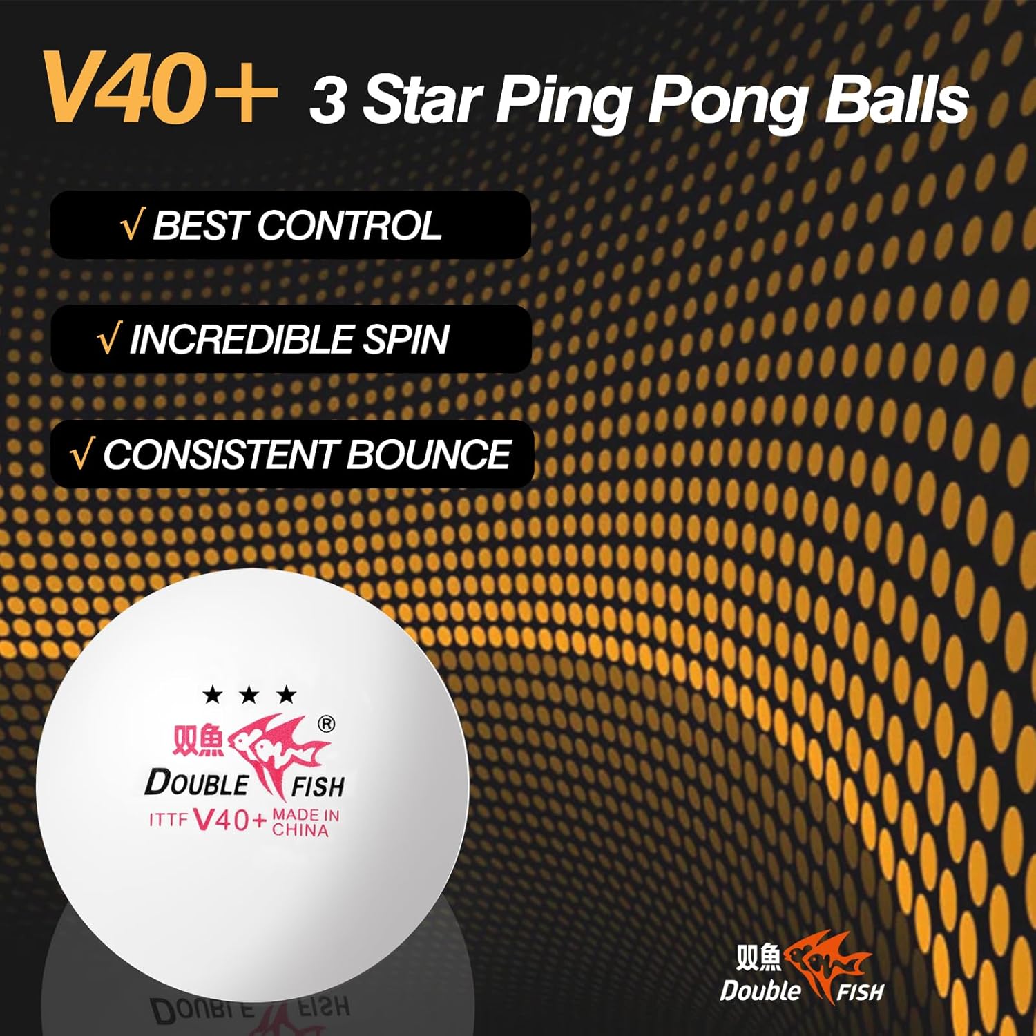 DOUBLE FISH 3 Star V40+ ping pong balls offer exceptional durability.