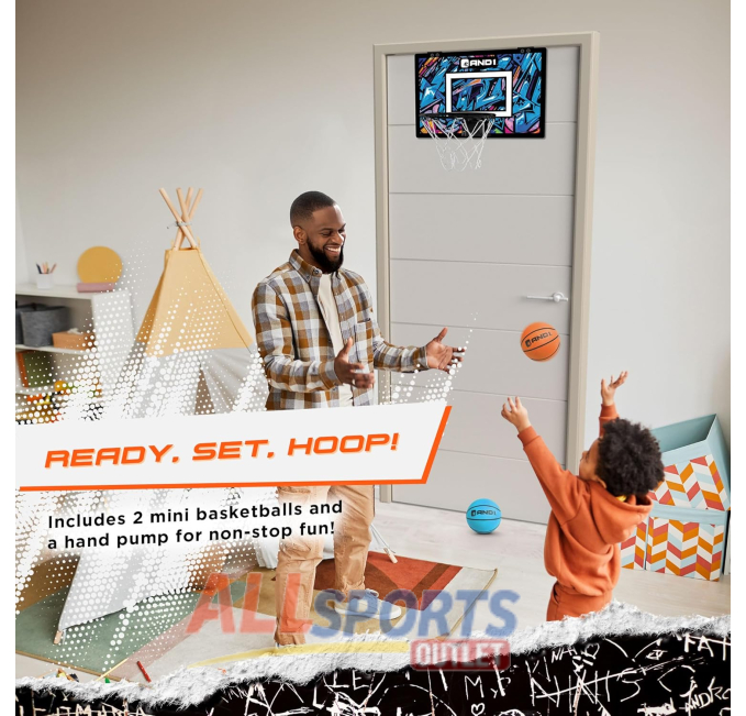 Mini basketball hoop perfect for indoor play with an 18×12-inch backboard.