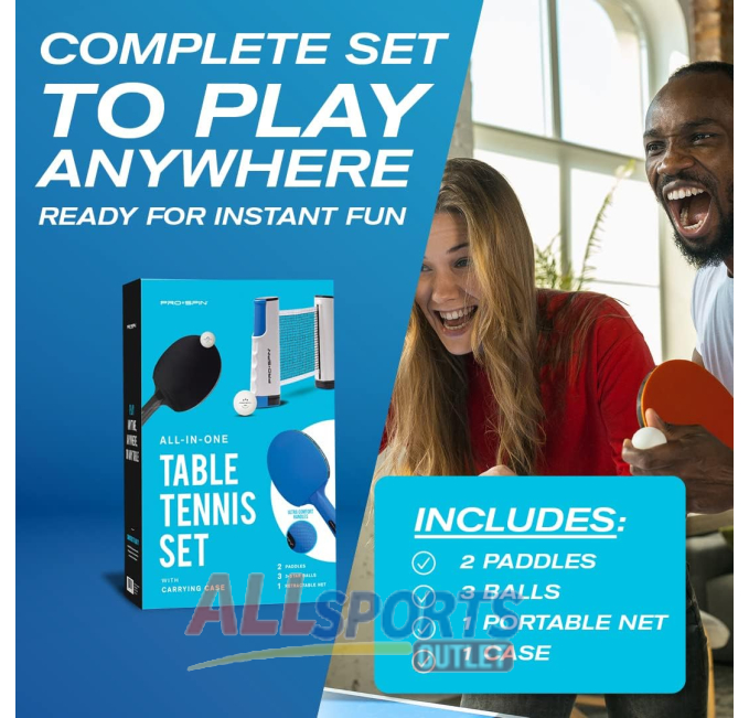 The PRO SPIN All-in-One Ping Pong Set includes a 72″ retractable net, paddles, balls, and a convenient storage case. Ideal for any table, this portable set offers ultra-comfort and is perfect for 2-player games. Enjoy easy setup and reliable performance for hours of fun. Great for both casual and competitive play.