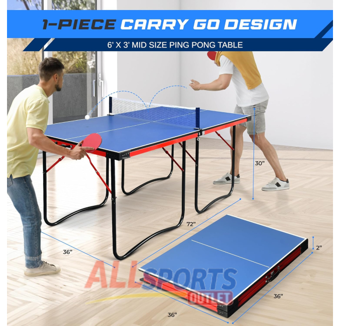 SereneLife 6×3 Foldable Table Tennis Set offers a space-saving design with easy storage. Includes a net, clipper, and post for a complete setup. Ideal for indoor use, providing a compact and portable option for fun and competitive play. Durable construction for long-lasting enjoyment.