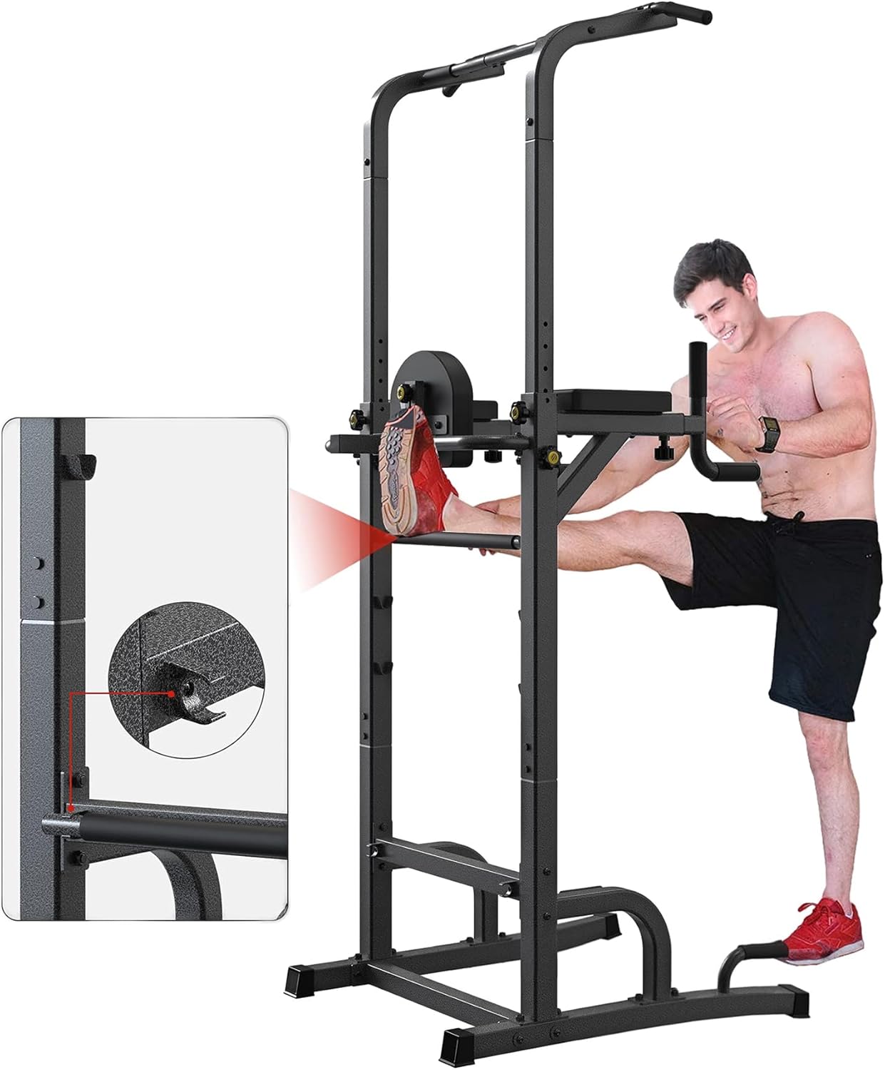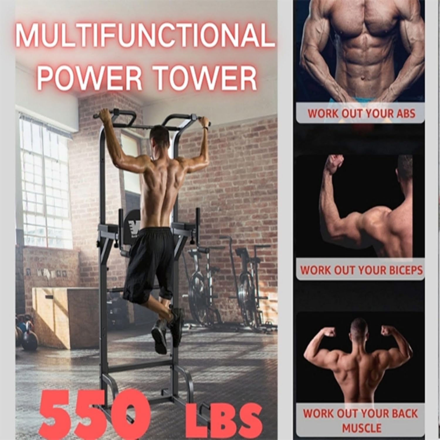 Power Tower Adjustable Height Strength Training is built for home gyms. Features adjustable height for pull-ups, dips, and more exercises. Sturdy design ensures stability during intense workouts. Ideal for building upper body strength and improving fitness. Versatile and easy to set up.