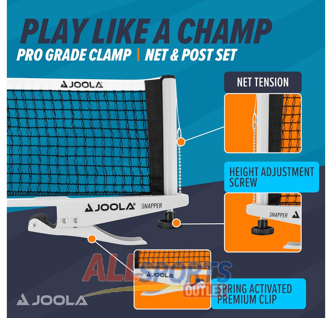 The JOOLA Snapper Professional Table Tennis Net and Post Set offers easy setup with spring-activated clamps. Portable and designed for 72″ regulation size tables. Durable silver net for high-performance play. Ideal for casual and competitive players.