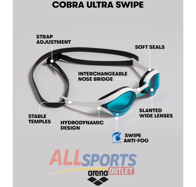 Arena Cobra Ultra swim goggles feature anti-fog technology for clear vision. Polycarbonate mirror lens enhances durability and reduces glare. Adjustable straps ensure a secure fit for men and women. Ideal for competitive swimmers seeking comfort and performance.