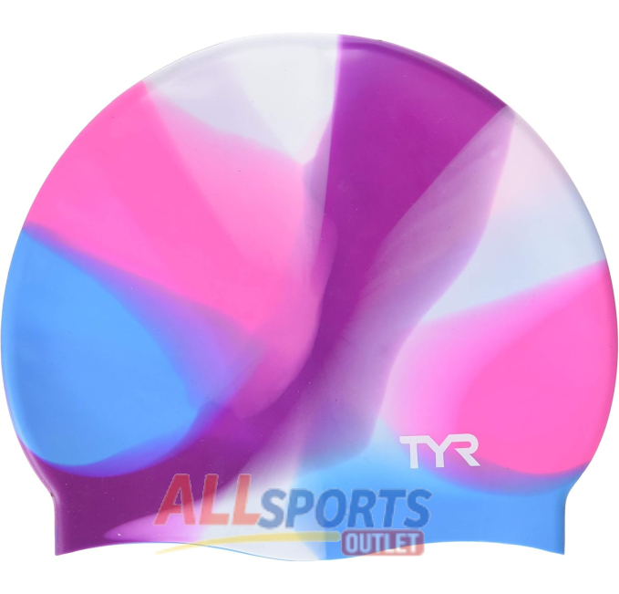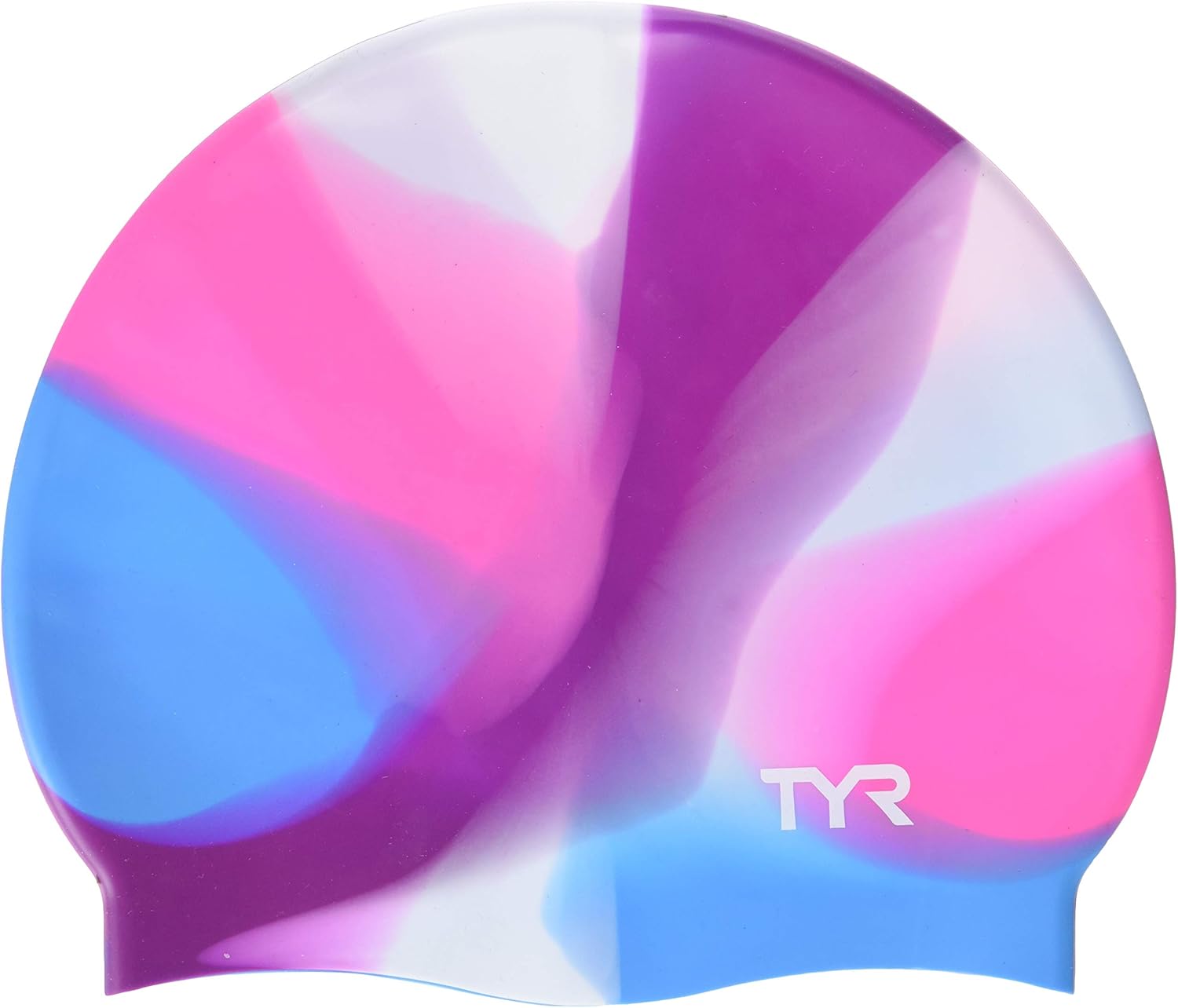 The TYR Tie Dye Silicone Swim Cap is designed for youth swimmers. Made from durable silicone, it provides a secure and comfortable fit. The vibrant tie-dye pattern adds a fun and stylish touch to your swim gear. Perfect for young swimmers, it protects hair from chlorine while offering long-lasting durability.
