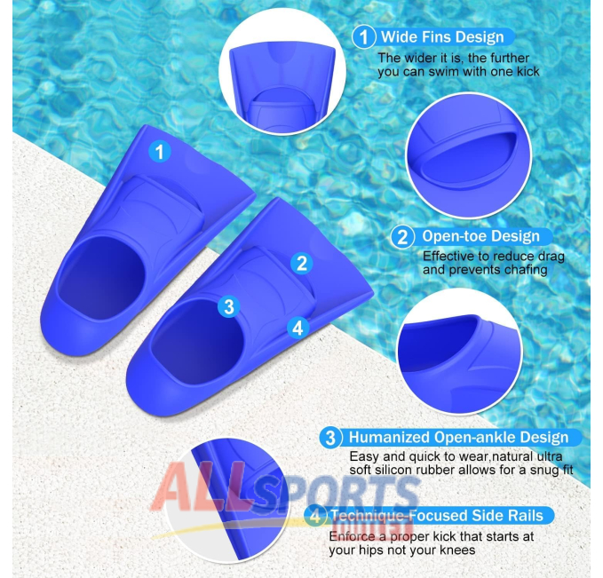 Durable silicone swim fins designed for lap swimming and training. Perfect for kids, teens, and adults, providing comfort and support during water activities. Includes a convenient mesh bag for easy travel. Ideal for swimmers looking to improve technique and enhance swimming efficiency. Great for both beginners and experienced swimmers.