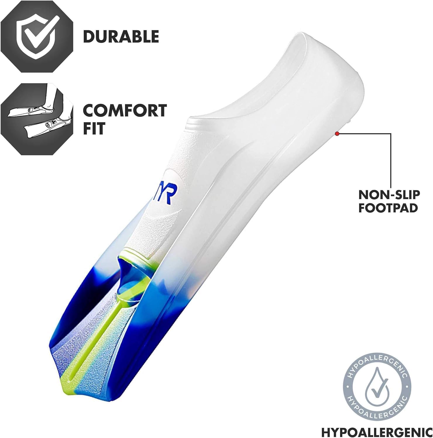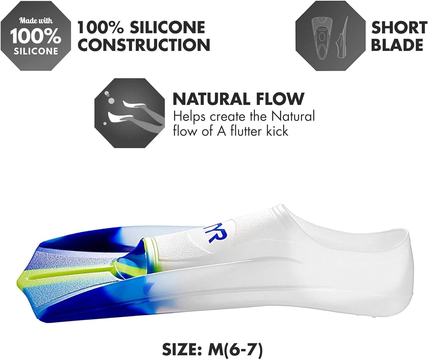 Lightweight silicone construction for easy movement in the water.