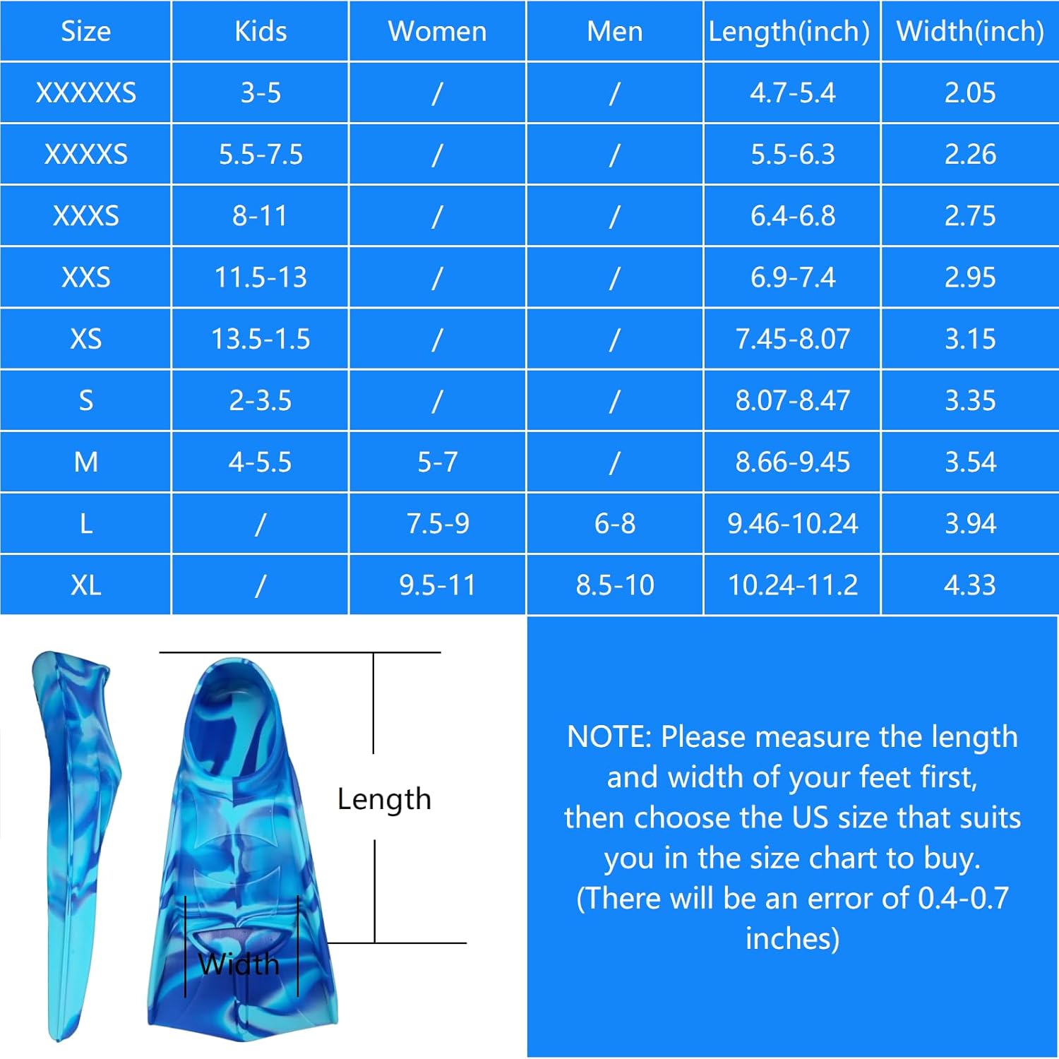 Customized left and right fins available in sizes 4.5-13.5.