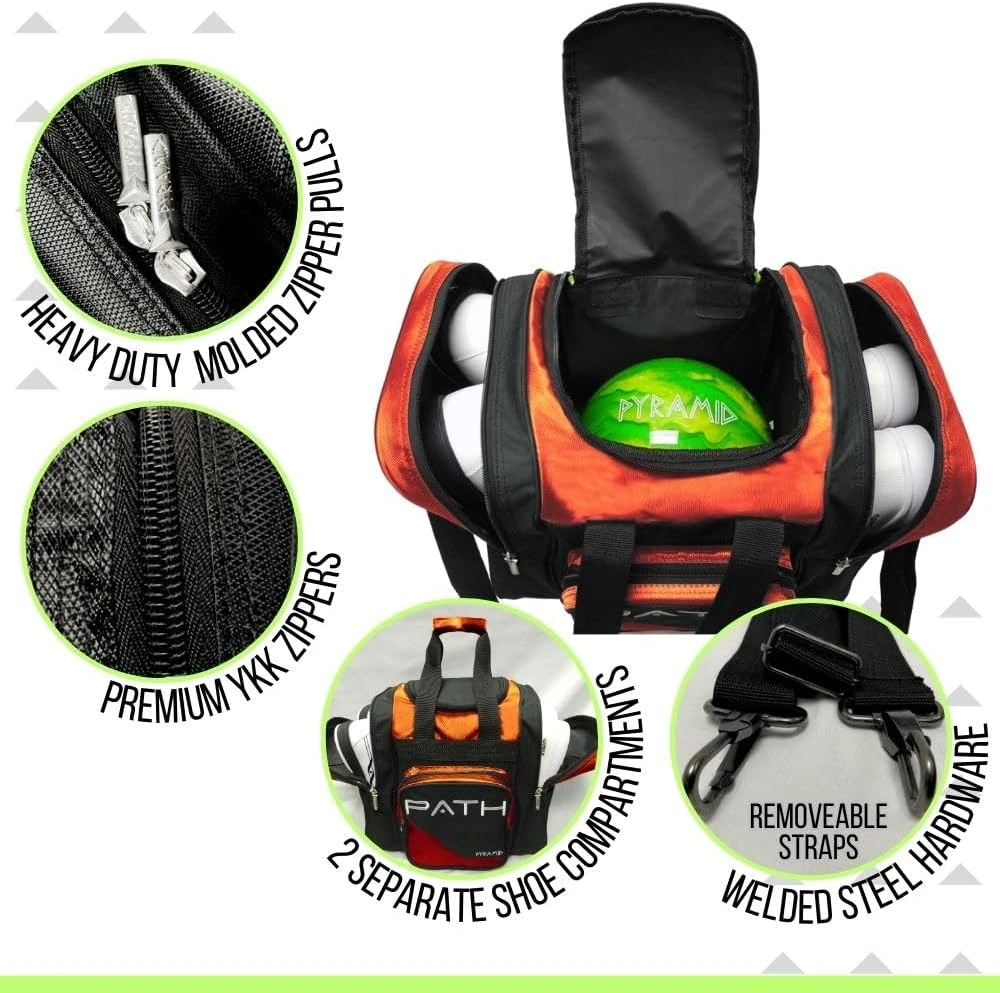 The Pyramid Path Pro Deluxe Single Tote in black and orange offers stylish and practical storage for your bowling gear. Designed for easy transport, it’s perfect for bowlers looking for a compact, durable bag. Featuring high-quality materials, this tote provides reliable protection for your ball and accessories.