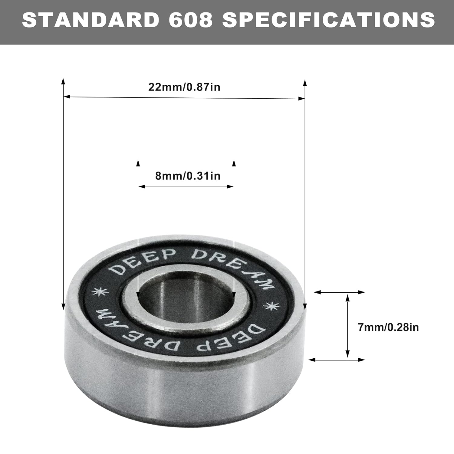 Premium 608rs bearings designed for smooth and fast skateboard rides.
