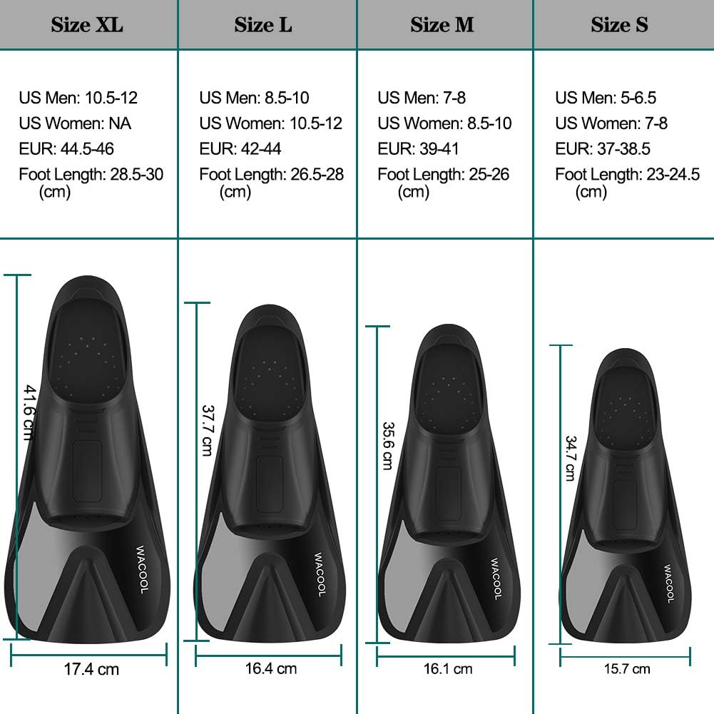 WACOOL short blade fins designed for easy snorkeling and swimming.
