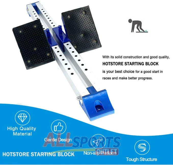 The HOTSTORE Aluminum Starting Block is designed for athletes looking to improve their sprinting performance. Its durable aluminum construction ensures stability on various surfaces, including plastic runways and cinder tracks. This versatile starting block is perfect for both training and competition, providing a reliable platform for explosive starts. Elevate your track experience with this essential gear from All Sports Outlet.