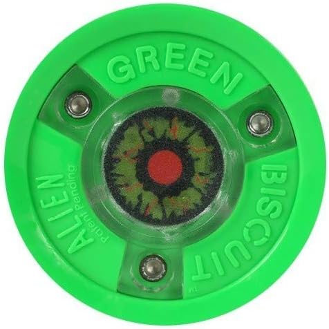 The Green Biscuit Alien LED Light Hockey Puck is designed for ultimate visibility during training.