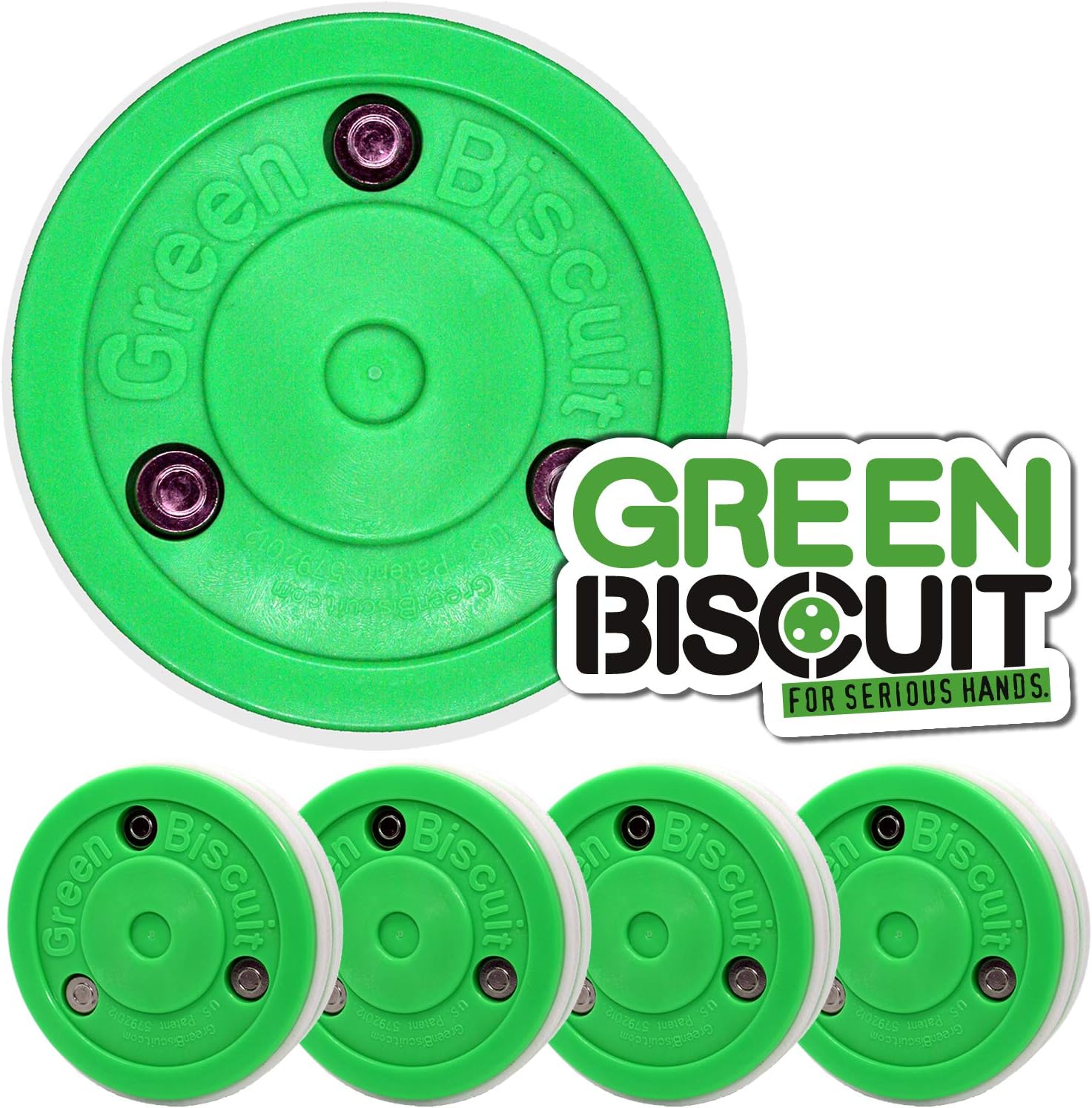 Green Biscuit hockey pucks are ideal for off-ice training. Designed for stickhandling practice on any surface, they simulate real puck movement on ice.