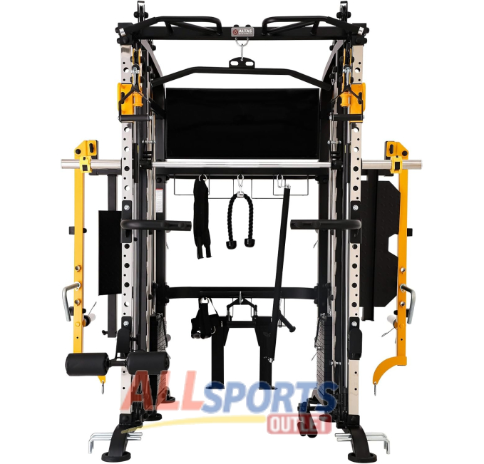 The Altas Strength Smith Machine with Squat Rack offers a full-body workout experience. Features adjustable lever arms and a pulley ratio system for varied exercises. Built for strength training with a pull-up bar and leg developer. Ideal for home gyms or light commercial setups. Sturdy and durable design supports heavy lifting and intense routines. Perfect for building muscle and enhancing upper and lower body strength.