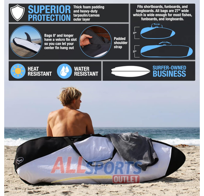 The Ho Stevie Surfboard Bag Zippered Daybag is designed for ultimate protection and convenience. With foam padding and a durable cover, it keeps your board safe during travel. Features a comfortable shoulder strap for easy carrying. Perfect for surfers looking for a reliable and easy-to-use bag for their surfboard.